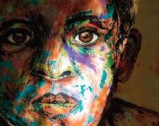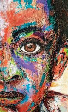 Après de nombreux essais, je décide de produire quelques visages avec une palette de couleur importante, reflets d’une activité intérieure intense Il faut que les émotions puissent transpercer rapidement sur la toile « Quand je peins j’ai besoin de retrouver l’humain J’aime rendre le tableau vivant, par l’expression du regard, des yeux mais aussi au niveau de la posture Donner de la force à mon tableau, souligner une émotion et renforcer le voyage C’est un écho à mes émotions
