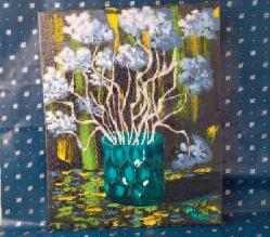 En plus, pour donner une saveur particulière à ses oeuvres Elle écrit des poèmes en posant sa voix pour faire vivre ses oeuvres Elle peint avec l’acrylique sur toile Elle a fait une exposition récente aux marché bon secour en août 2023 avec les artistes et aura un autre événement au mois de septembre 2023 à la ville de Brossard dans le cadre de la culture
