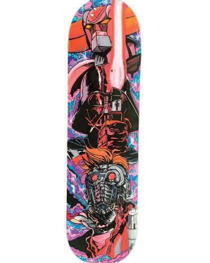 Sa démarche artistique tire une inspiration de multiples univers : comics, Mangas, bandes dessinées, dessins animés, séries télévisées Ses créations se retrouvent sur divers supports, notamment sur des skateboards