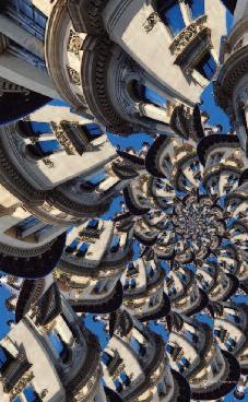 La structure des mansardes, par similitude et itération lors du changement d'échelle du bâtiment à l'échelle urbaine, ressemble de ce fait à une fractale