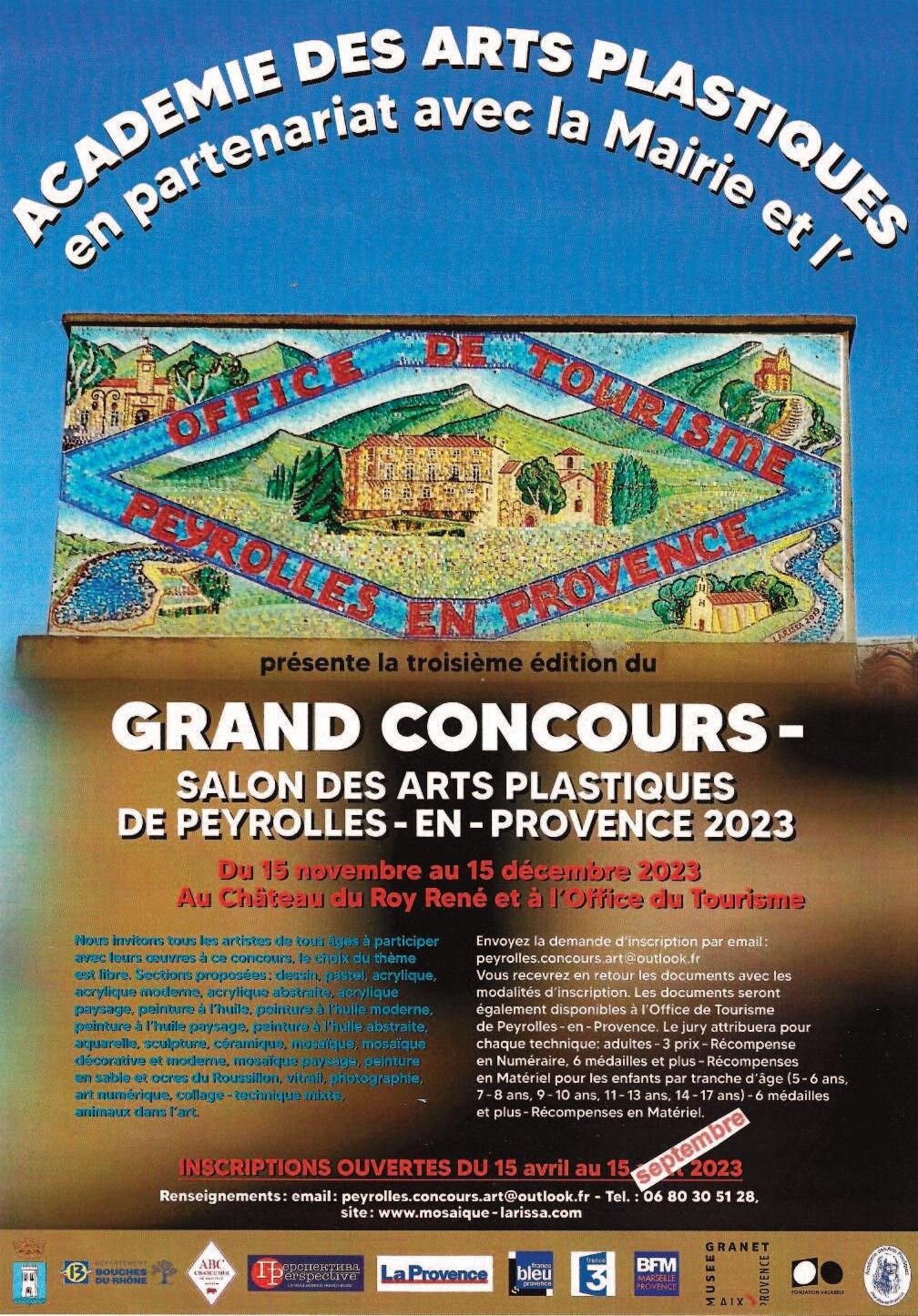 Actuellement Larissa organise en collaboration avec la Mairie et l'Office de Tourisme la troisième édition du Grand Concours - Salon international des Arts Plastiques, qui aura lieu du 15 novembre au 15 décembre 2023 au Château du Roy René et à l'Office de Tourisme de Peyrolles-en-Provence! Les inscriptions sont prolongées jusqu'au 15 septembre 2023 par email : peyrolles concours art@outlook fr