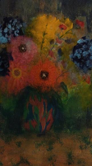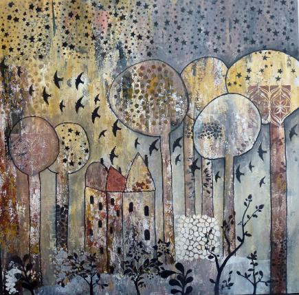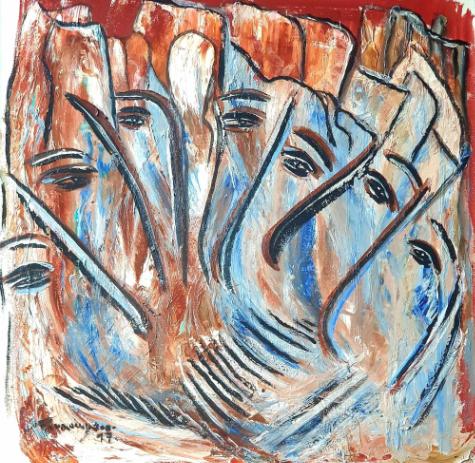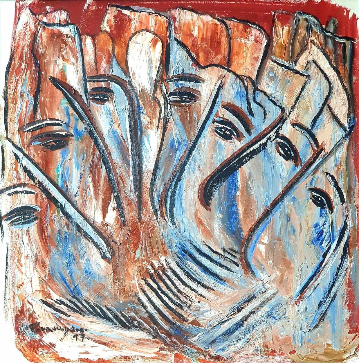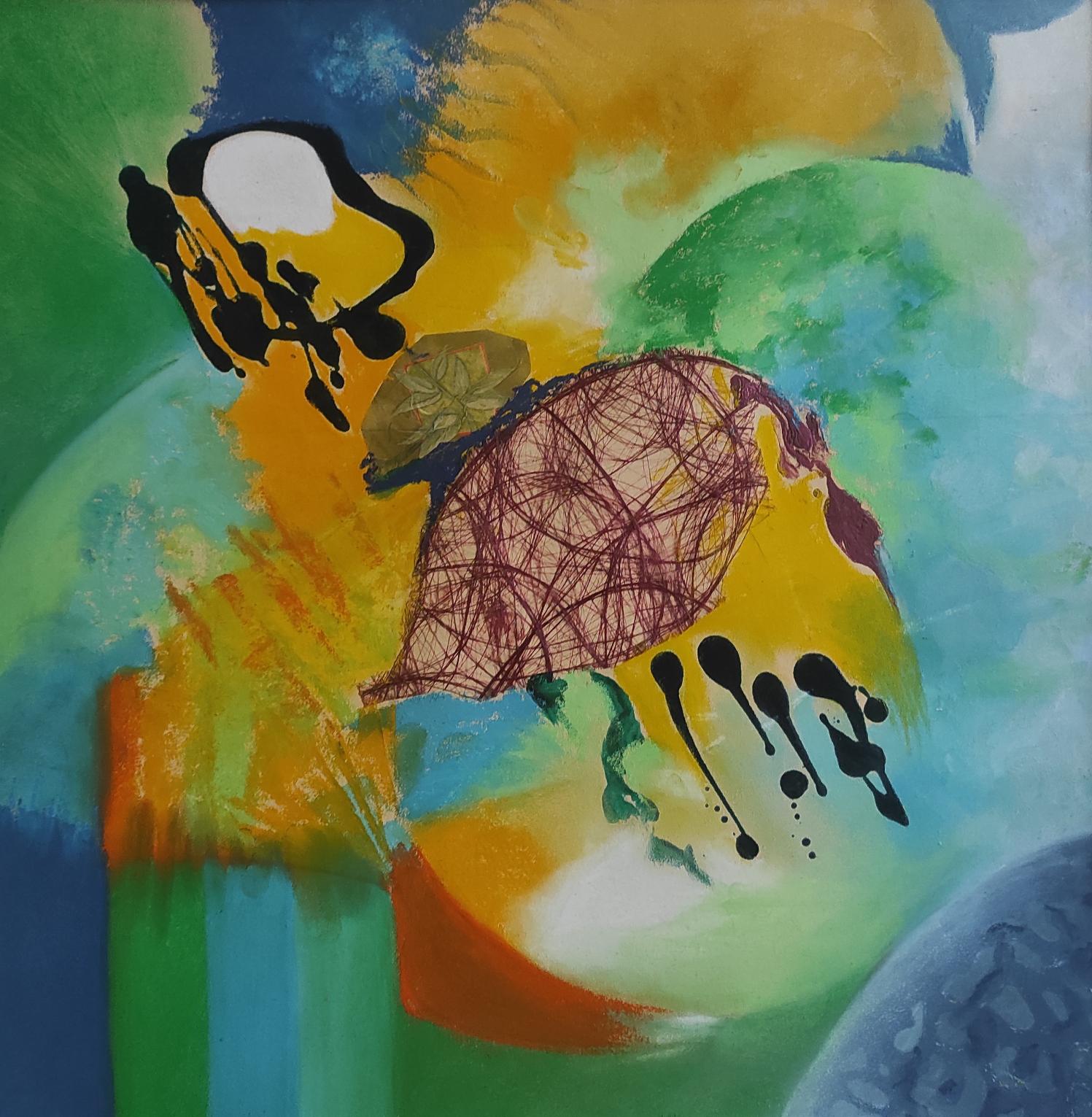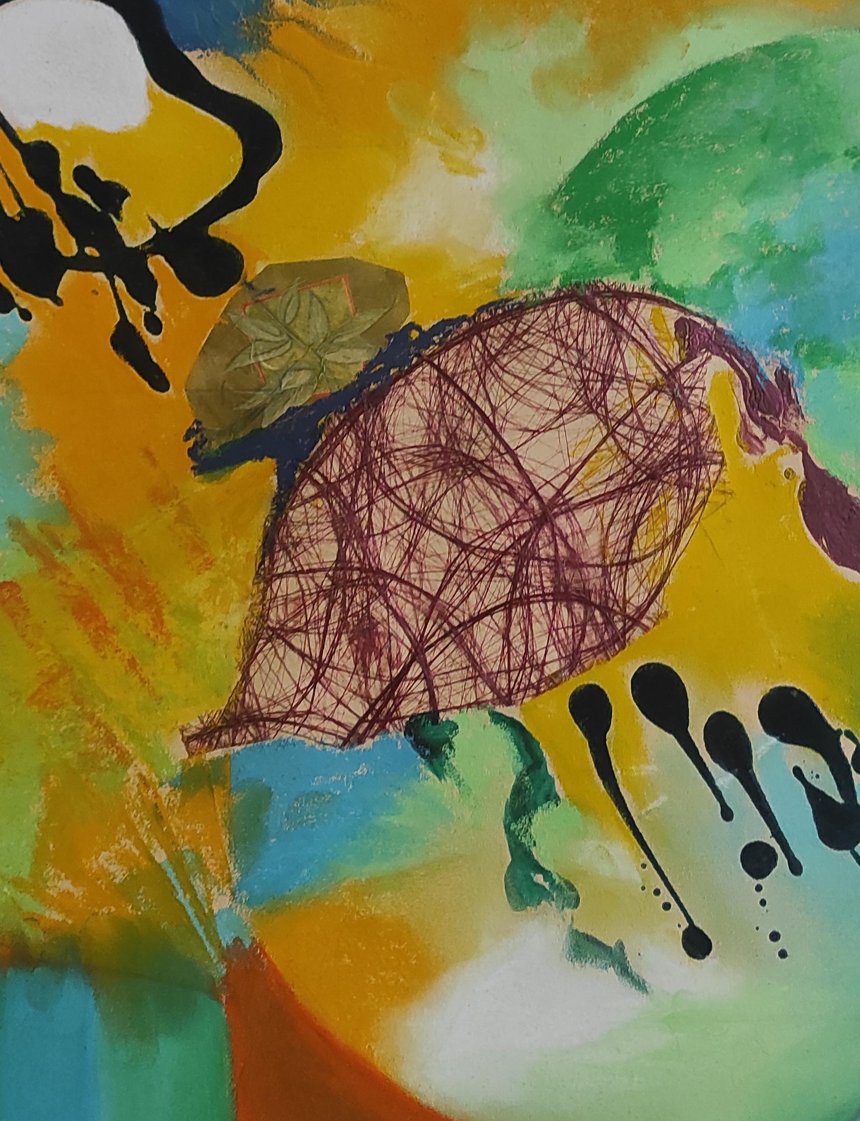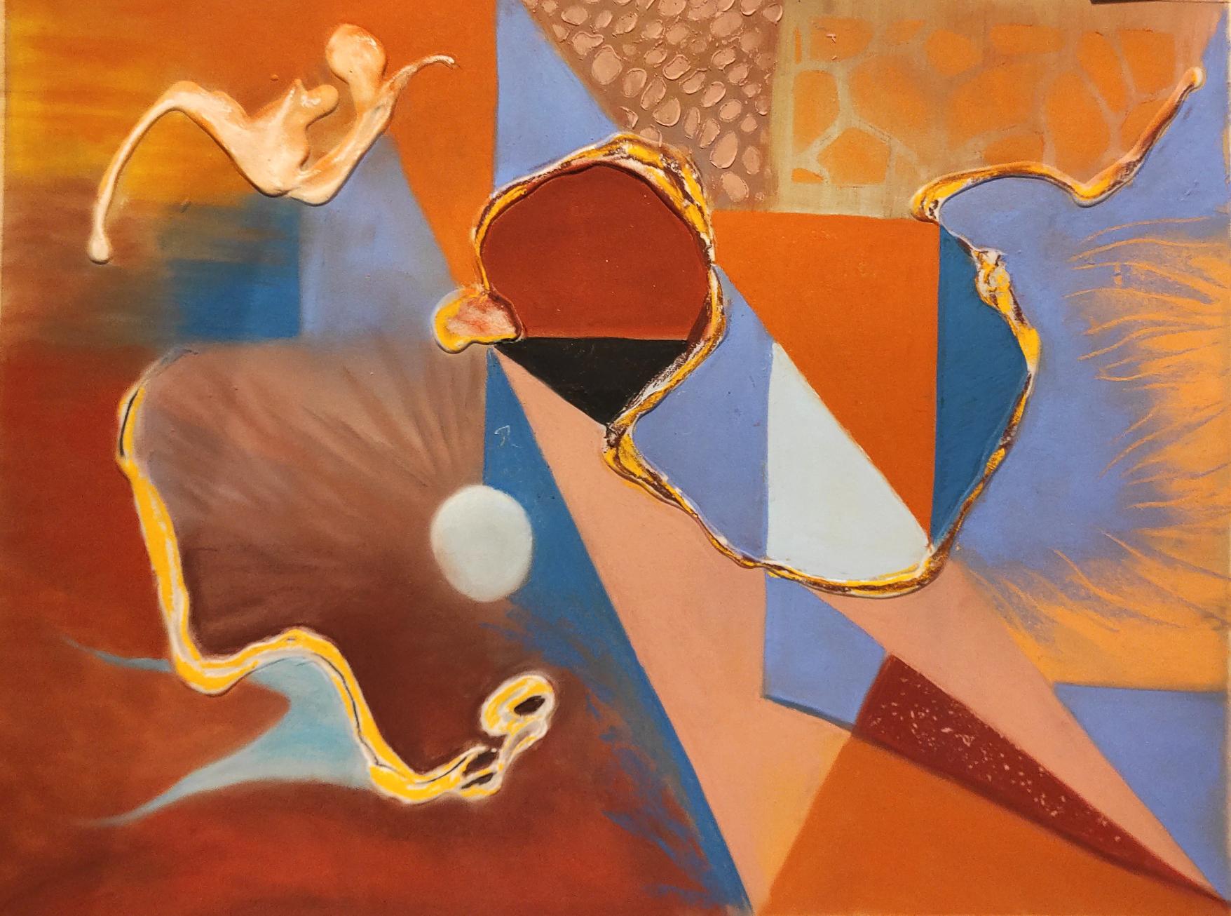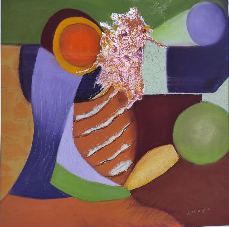 These creations are born from a free gesture, in an intertwining of colors and tones from different materials (acrylic, pastel). Each creation is a dialogue shaped by a paradox of fragile balance.