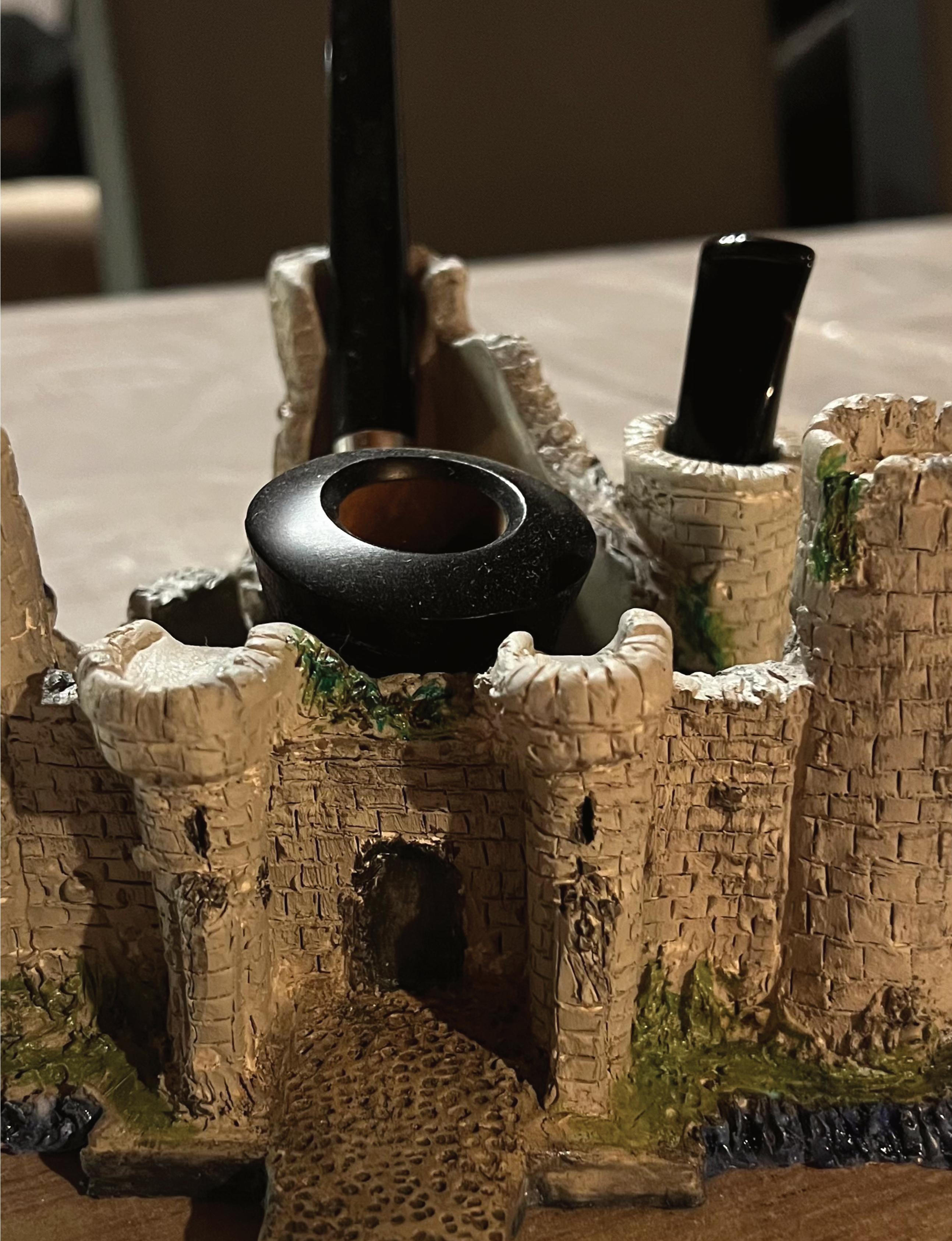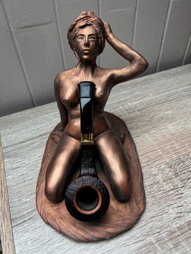 Ialso particularly enjoy adding other materials such as metal, glass, or even sand, seeking in these combinations a kind of poetry, a dance, a metamorphosis in the making. I also create portraits out of a love for detail and technical challenge — a quest for accuracythatbothnourishesandcounterbalances my freer approach. Living in the “cité pipière,” I sometimes have fun crafting pipe stands on request — a nod to my surroundings, and to the pleasure of sculpting without calculation, simply for the joy of gesture and form.