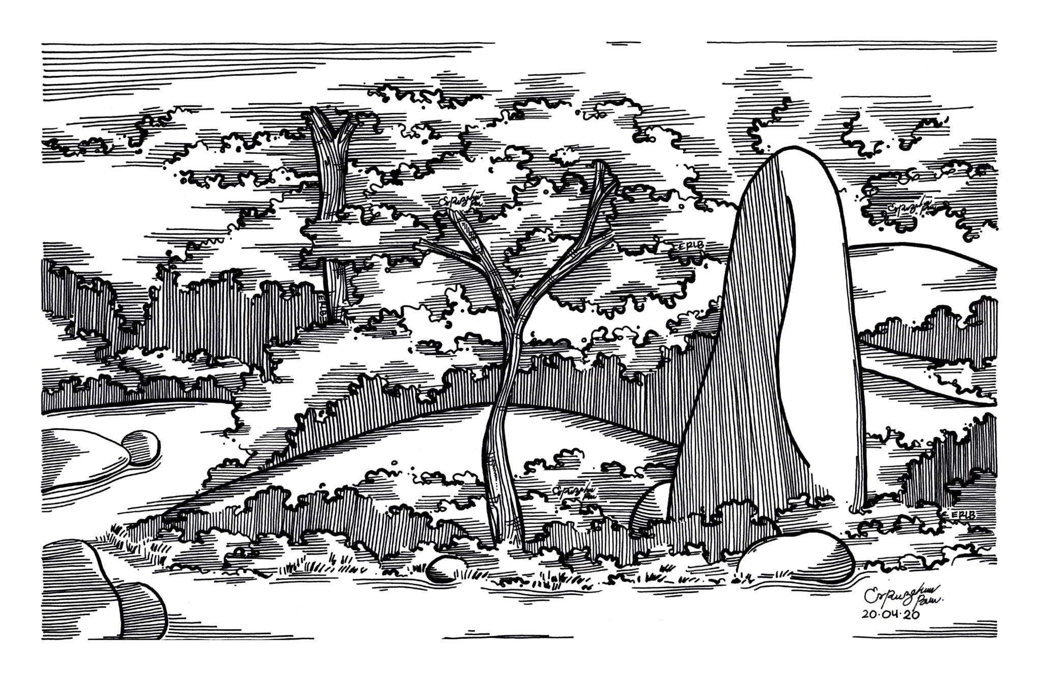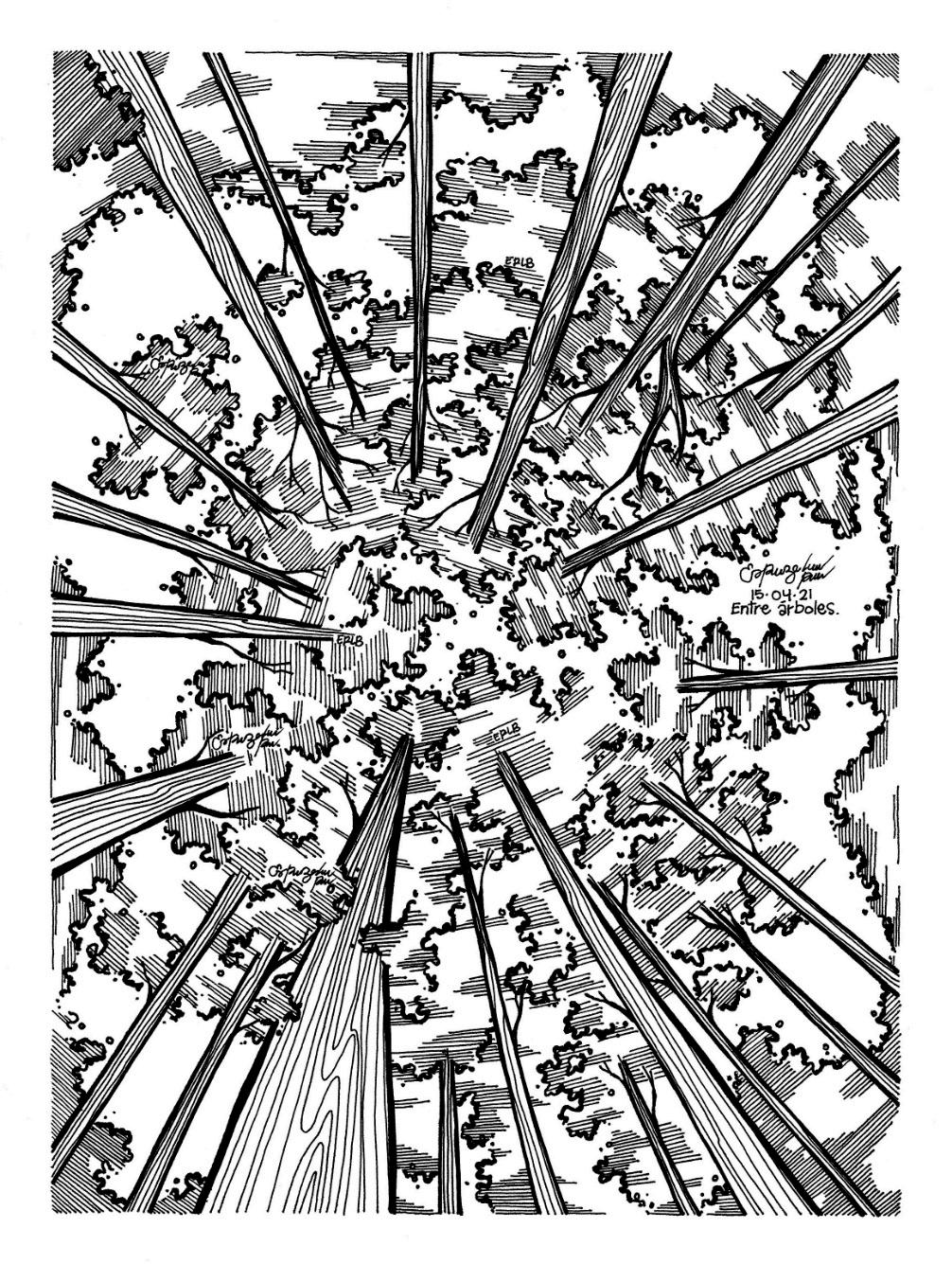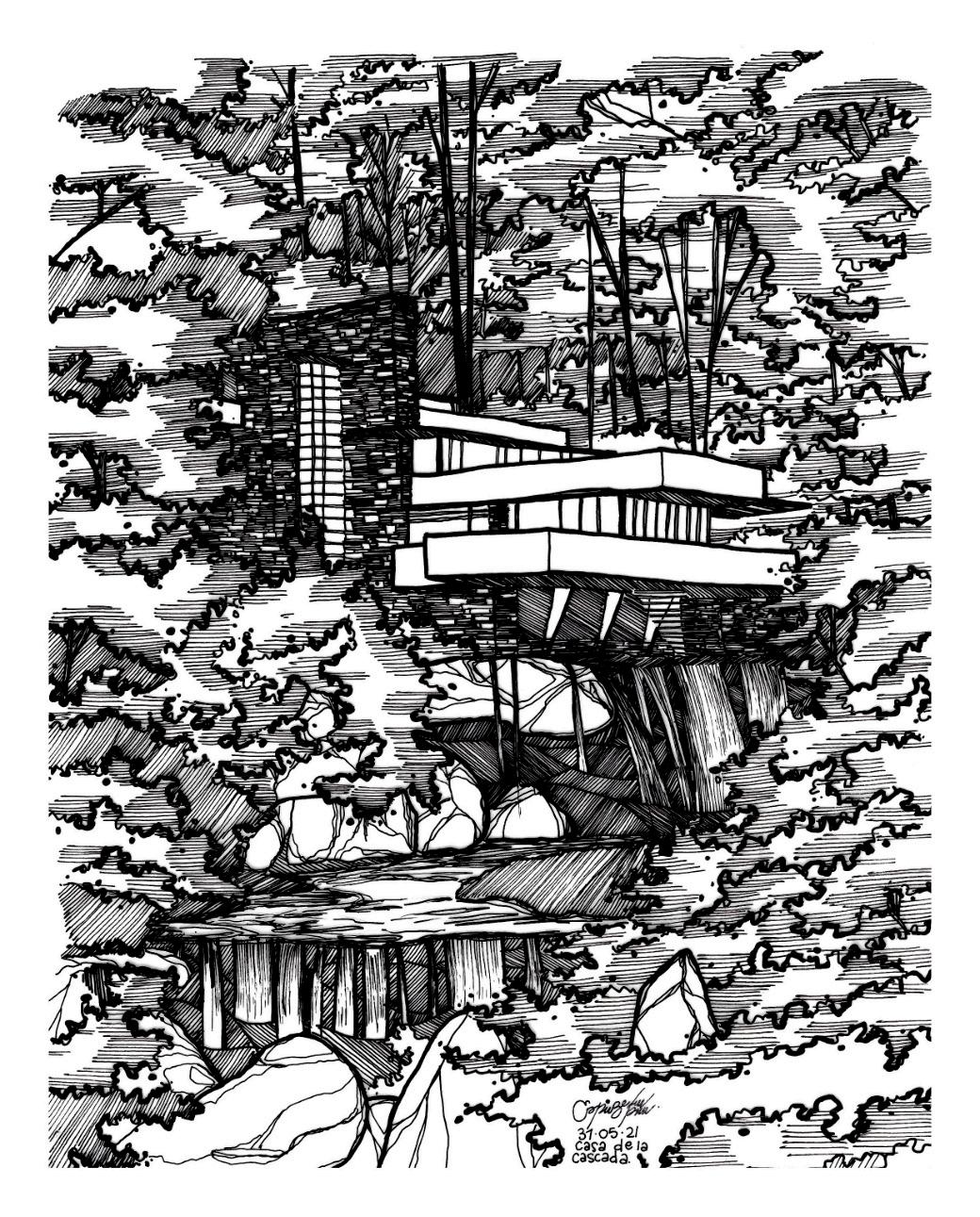 She has specialized in designing gardens for the conservation of pollinators and creating shelters for native species. Her illustrations reflect her sensitivity and deep love for nature. She seeks to convey the beauty of the natural environment, with the intention of encouraging respect and appreciation for it. She is passionate about creating balance between the environment and human beings, allowing them to share the same space in harmony and mutual respect. E. R. Luna Brena’s artistic style is characterized by the use of shading and bold ink strokes created with technical pens and nibs. The main elements in her work are large mountains, clouds, water reflections, waterfalls, and majestic trees.