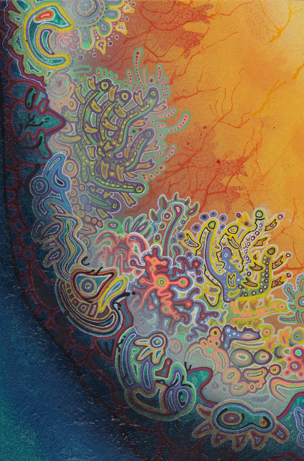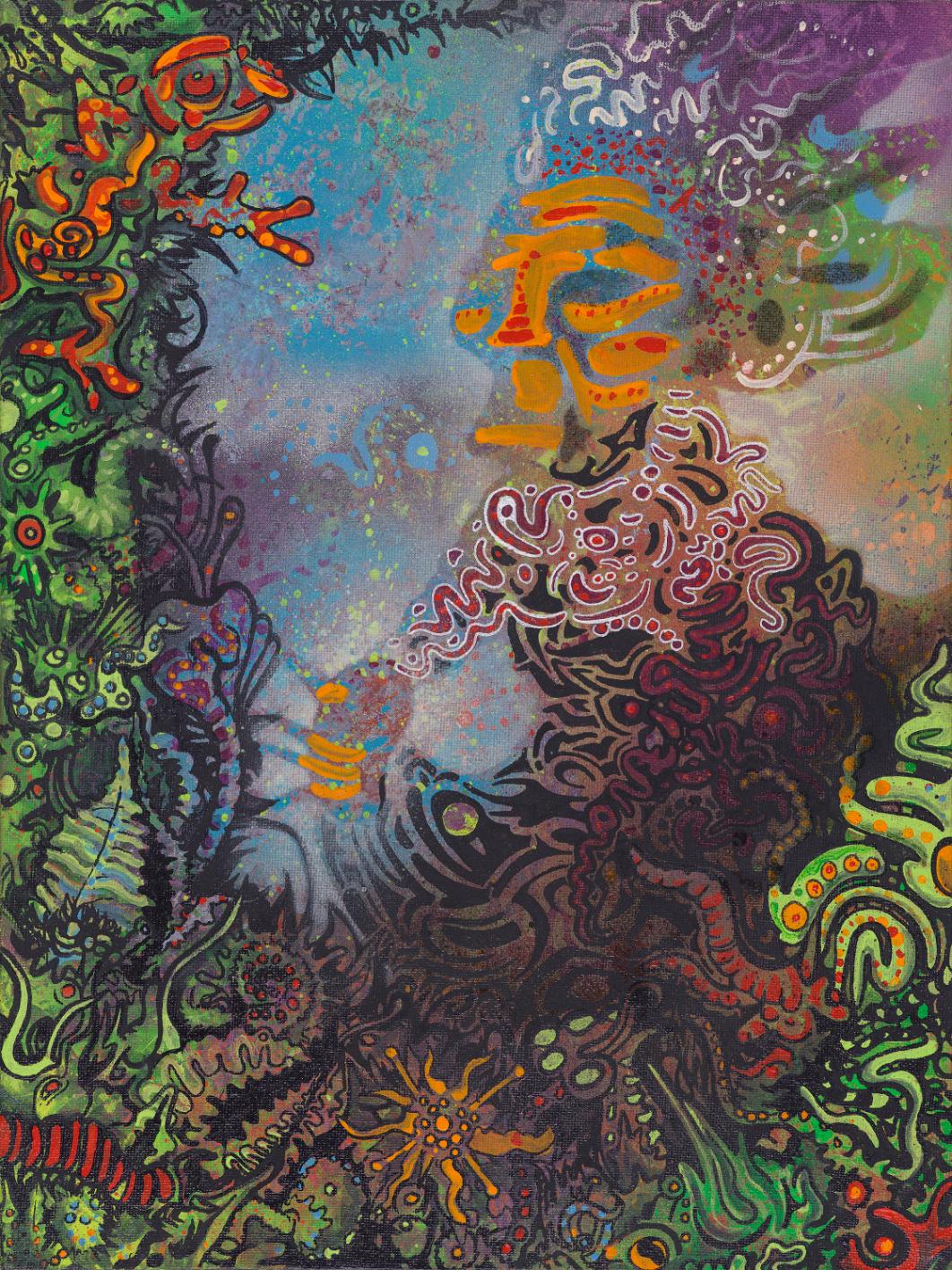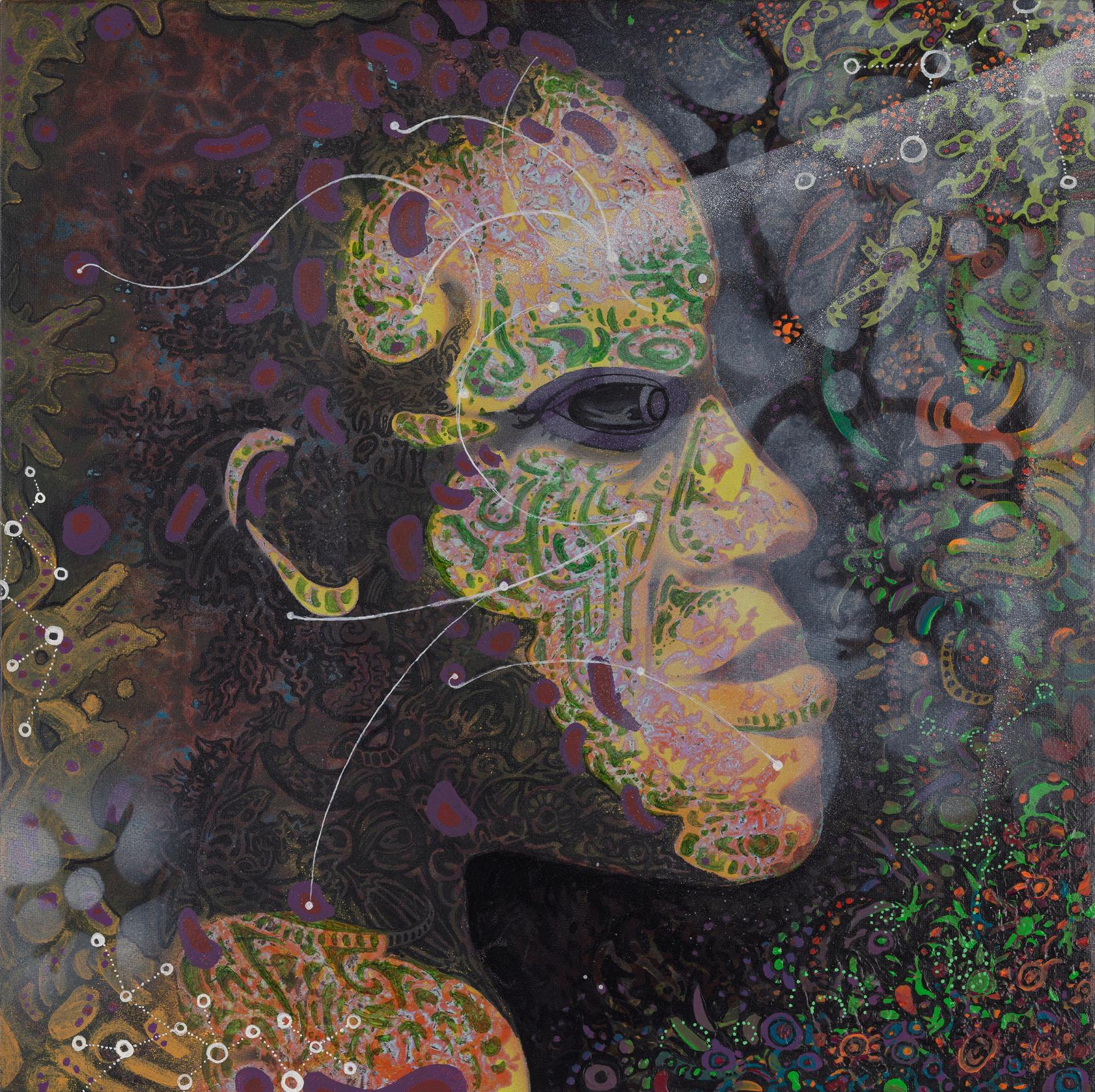 incorporate these ideas into his work, blending them with his own extrasensory experiences, as well as the stories and paintings of sages and initiates. He offers those who view his paintings a genuine contemporary reflection, exploring the limits of conventional thinking and the illusions of our era, in contrast to the vast ancestral knowledge passed down by ancientpeoples—knowledgethatformsthe foundation of human perception, the path ofourexistence,anduniversalessence.His work is an artistic fusion of the scientific andthemystical,aimingtoprovideviewers with keys to open the doors of their perception. The diversity of carefully interwoven techniques is used to capture moments as closely as possible to the experiencestranslatedthroughhispainting. Having arrived in Geneva in 2005, he currently lives in an artists’ community where each member contributes a personal touch in their field, with the idea of