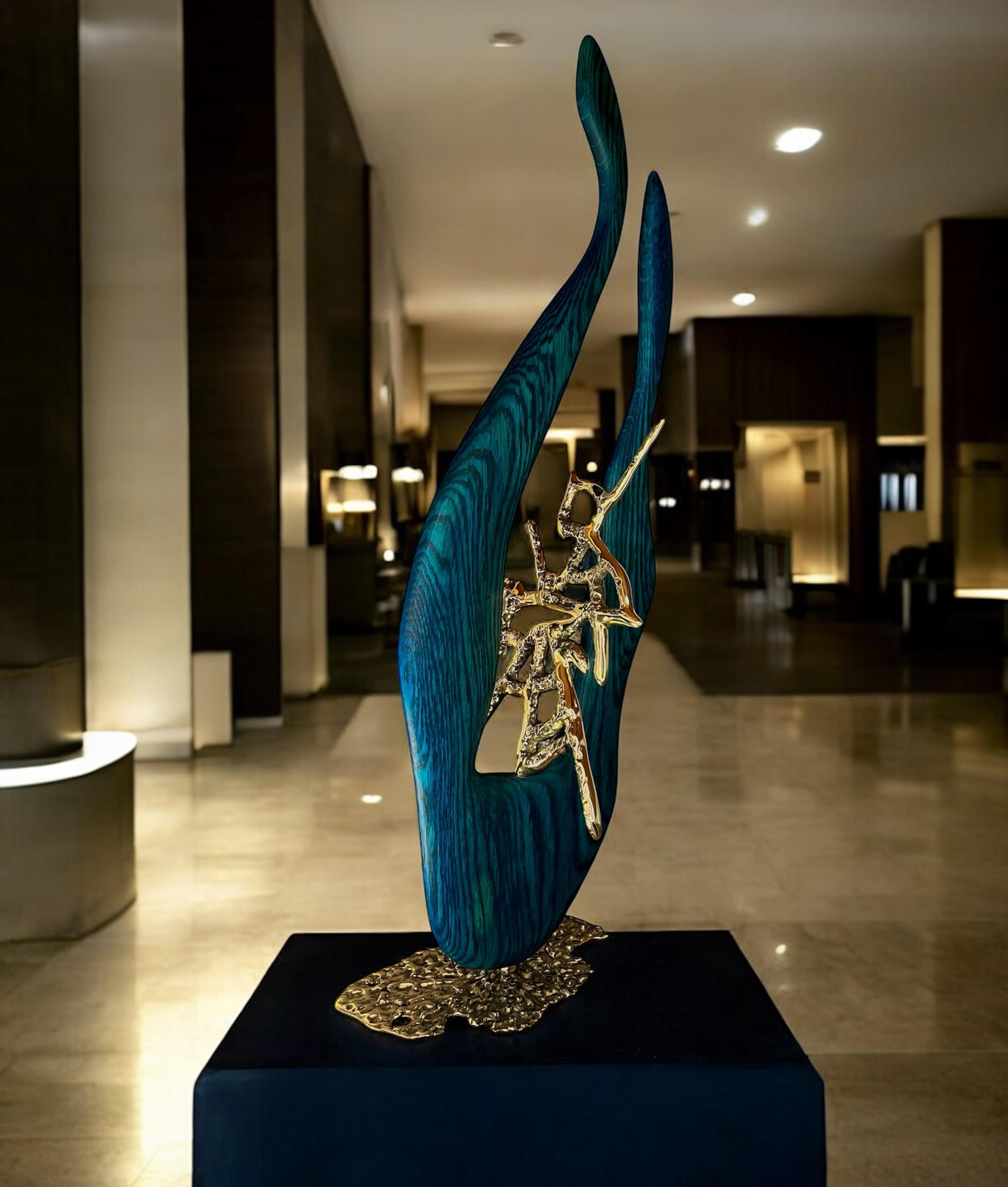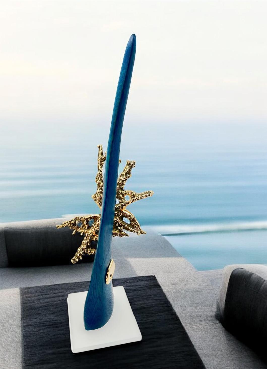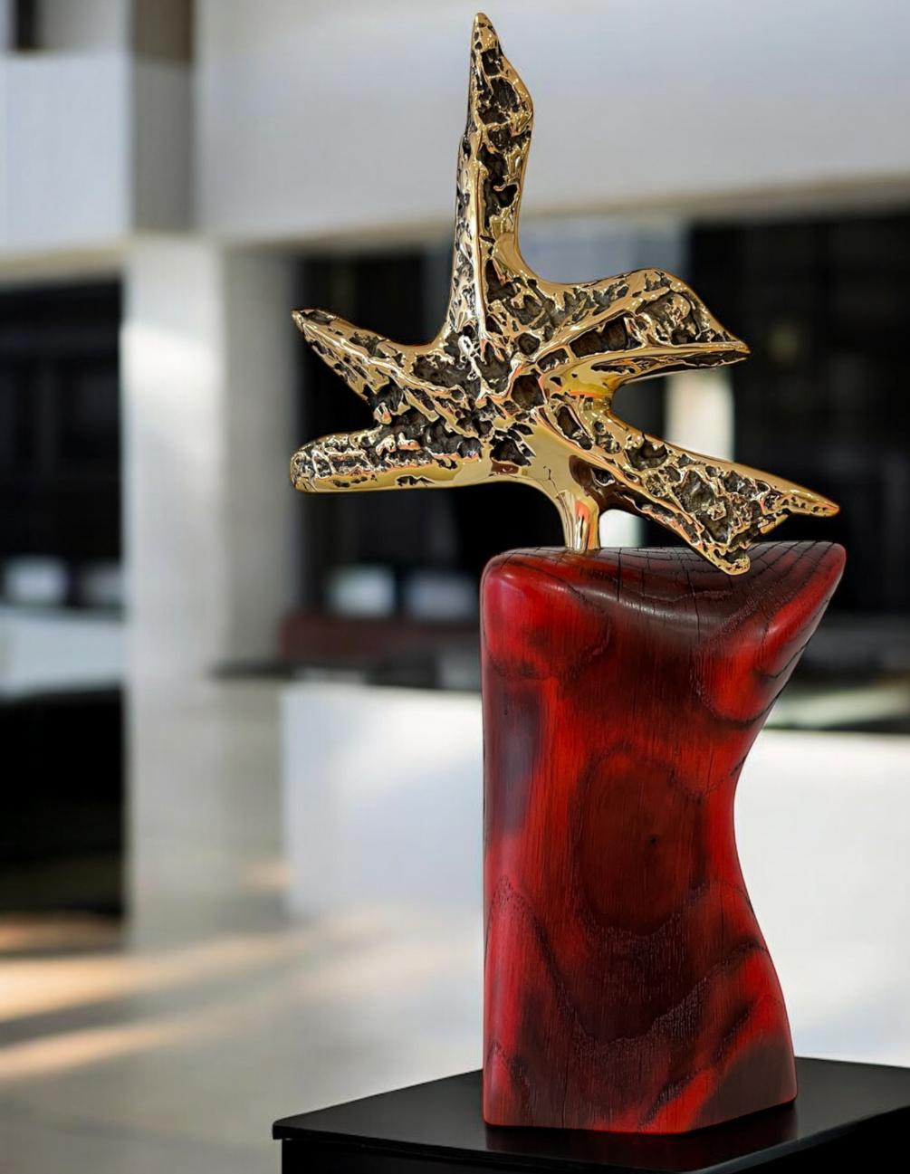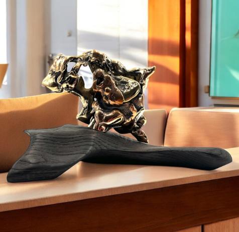 wood and Sculptures in Freestyle Bronze that reflect marine and terrestrial biodiversity. Based in the Basque Country since 2020, the artist presents his creations combining recycled noble wood from old houses, castles, and farms in the NouvelleAquitaine region, with polished golden Freestyle Bronze. Stéphane Pietrement’s artistic approach aims to establish a connection between the public and nature, encouraging deep reflection on the preservation of marine and terrestrial environments. His elegant and refined artworks, oscillating between the Vegetal, the Mineral, and the Animal, are exhibited at Roche Bobois on the Basque coast, as well as in art galleries and contemporary art fairs in France and abroad, captivating interior designers, art collectors, and art lovers who let themselves be transported into his exceptional universe.