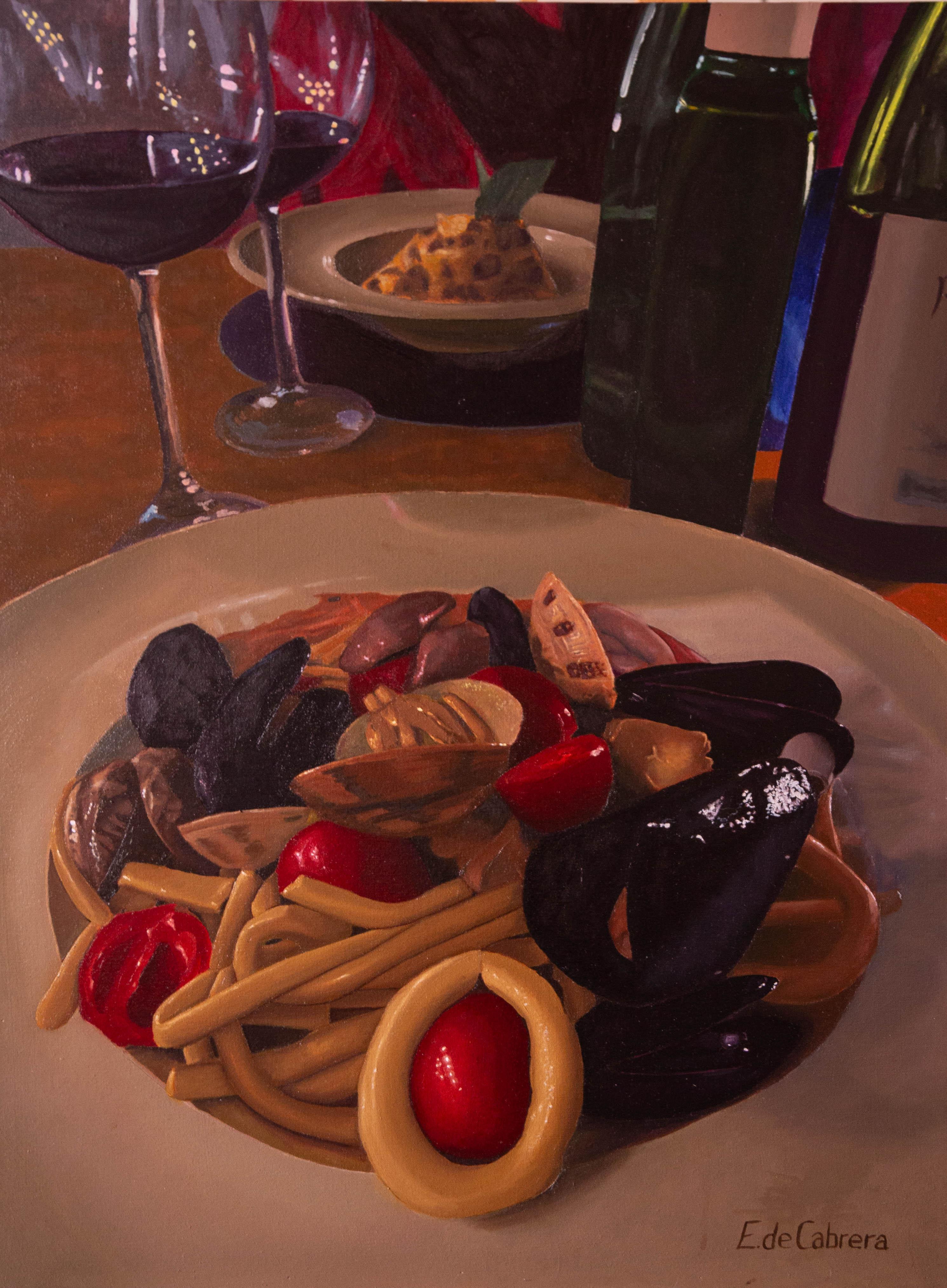 The human figure in different contexts, as well as the depiction of still lifes. I try to sketch a carefully planned composition and achieve a painting that offers rich information to the viewer. The technique I use is oil on canvas.