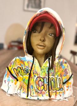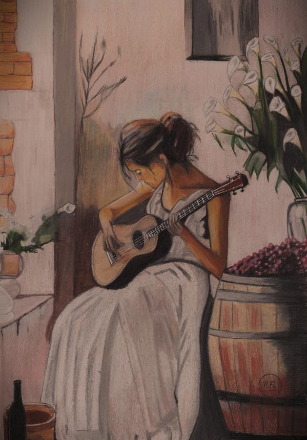 She has a preference for realistic and hyper-realistic styles in her paintings and ballpoint pen sketches. She composes her works from several photos, including her own photos, changing the colors, expressions, or backgrounds to precisely achieve what she wishes to paint. Representing reality with extreme precision, showing every detail, texture, and color nuance to create a painting that appears more real than reality itself, is something that fascinates her. From portraits to animals and everyday scenes, she spends hours studying the subject—much more than actually painting it—to capture every