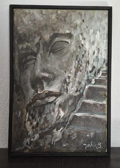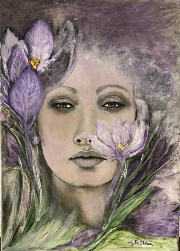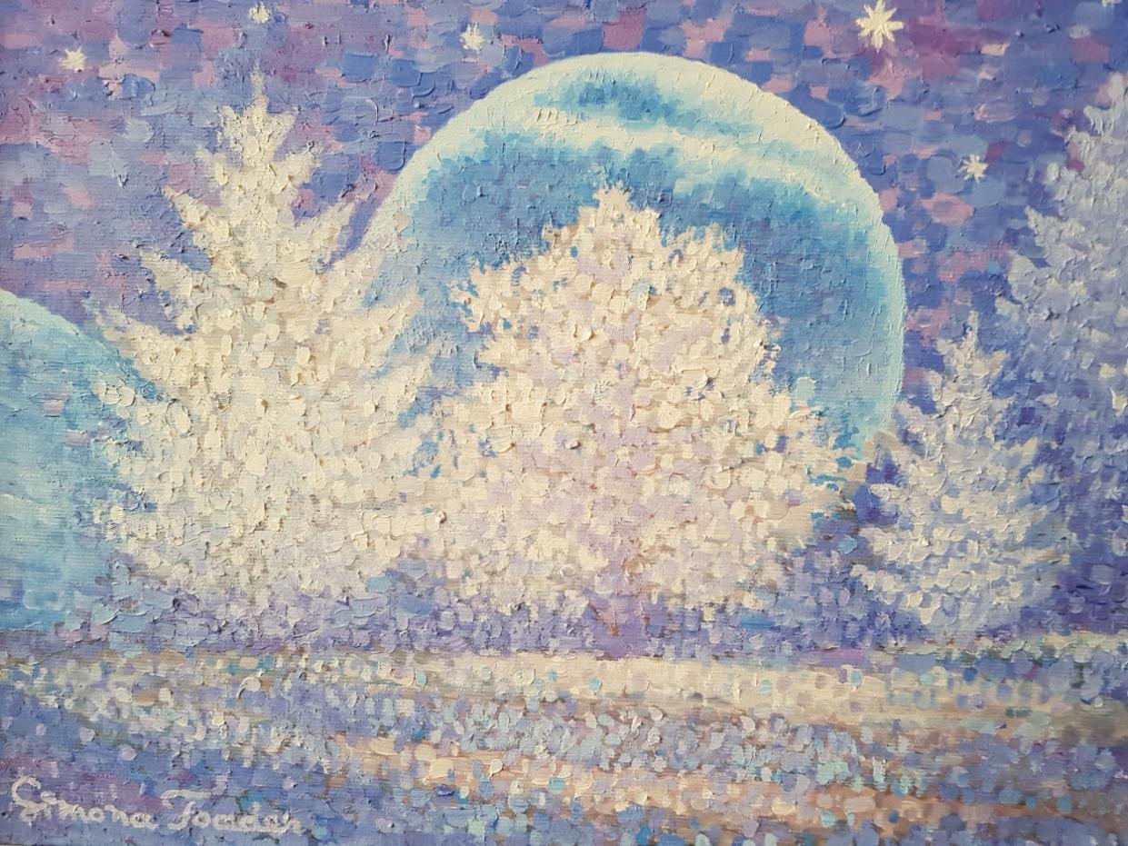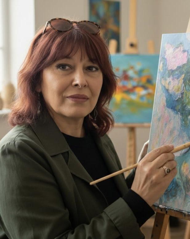 II have been drawing since childhood, and over time my passion evolved from pencil and charcoal sketches, through classical pastels, to the acrylic painting I create today. Along the way, I have discovered new techniques online and have been deeply inspired by the creativity and empathy of other artists. What has always mattered most to me has been the encouragement and support I received in pursuing this passion. During high school, I attendedpaintingclassesatthePopularSchoolof Arts in Roman.Although the program lasted two years, I completed only one year, as I later began my studies in Finance at the “Alexandru Ioan Cuza” University of Iași. I now work as a librarian at the “George Radu Melidon” Library in Roman. I also love poetry. I have published a volume of poems, “Behind the Mirror”, which I personally illustrated to reflect the emotions and themes of my verses. I have taken part in group exhibitions as well as charity auctions, where my works have been appreciated and acquired. I am constantly searching for what lies beyond the visible—for the unseen, for the mystery hidden both in the world and in life itself. Between dream and reality, between the eye and the heart, I seek the hidden sensitivity that exists within people.