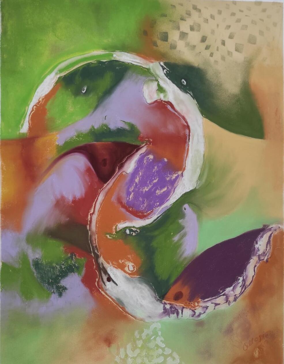 My first abstract works date back to late 2011. My creative process, which draws on the evocative power of the forms and colors found in nature, aims to open the doors of imagination and emotion without passing through words. It is about ‘allowing one to see,’ in the words of the poet Éluard, rather than explaining or indicating what should be seen. Guiding anyone in their reading or interpretation by giving my creations a title or providing an accompanying text is therefore out of the question. The encounter between the work and the viewer then becomes a space of exchange—a fusion between colors, atmosphere, experience, and sensitivity.