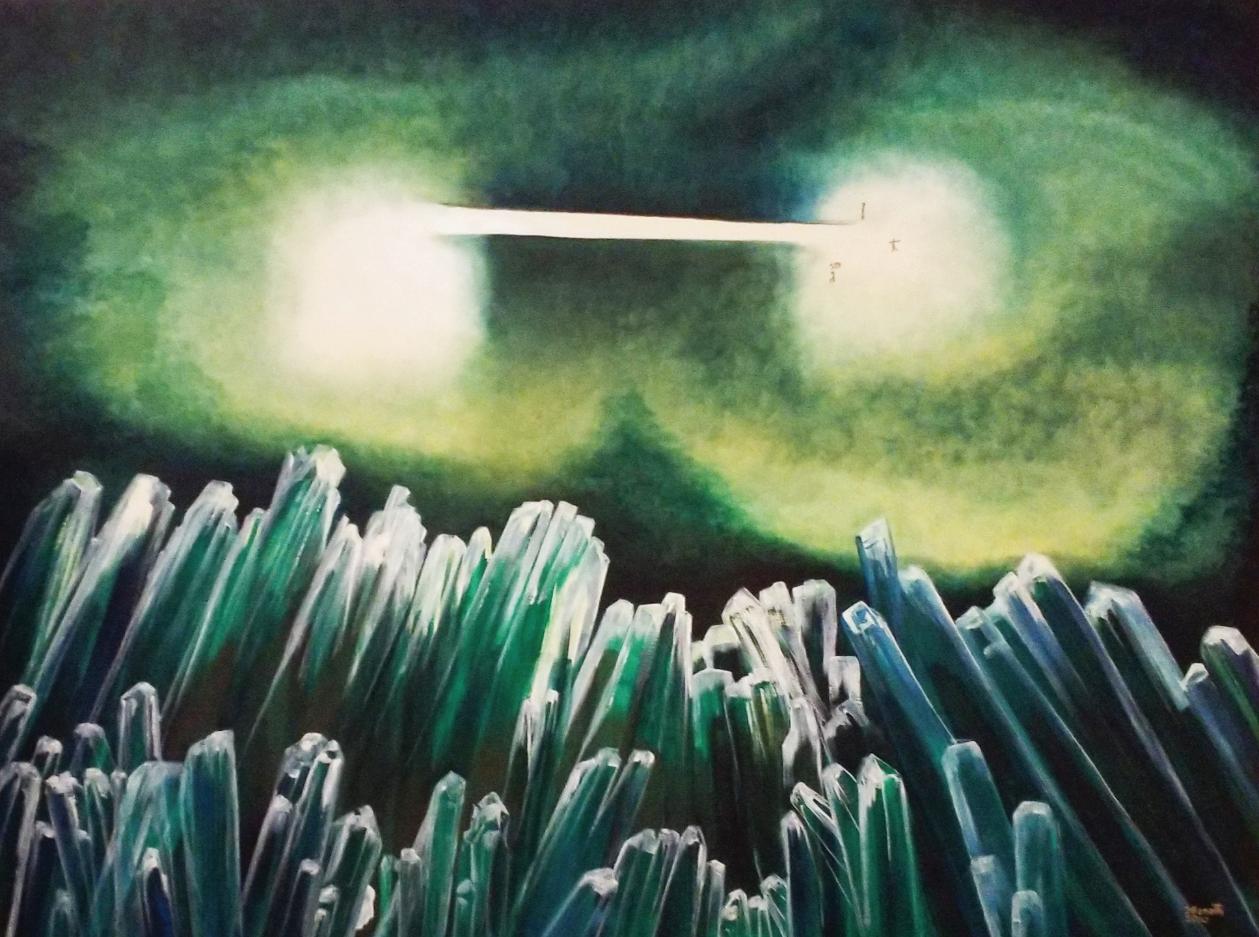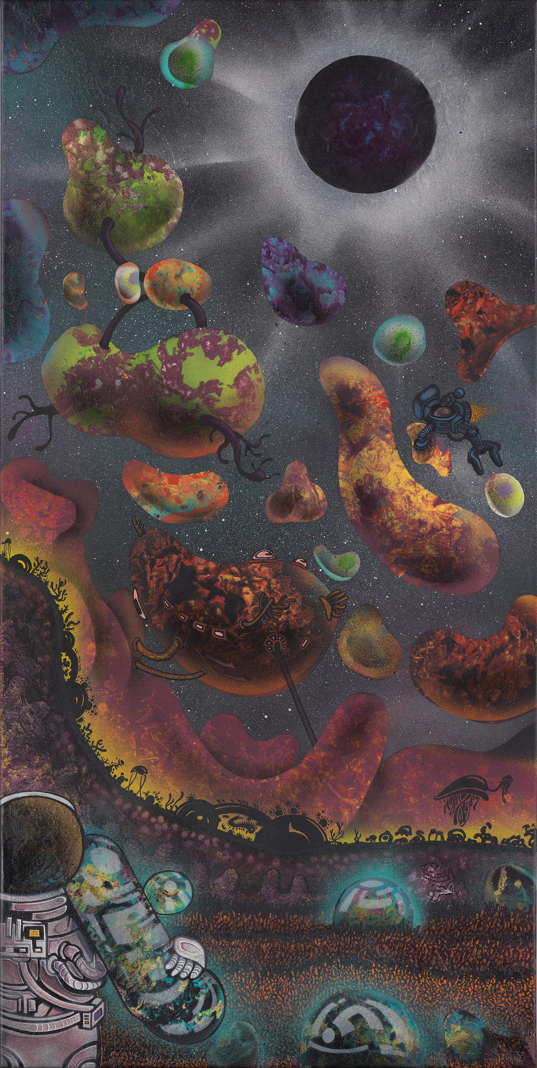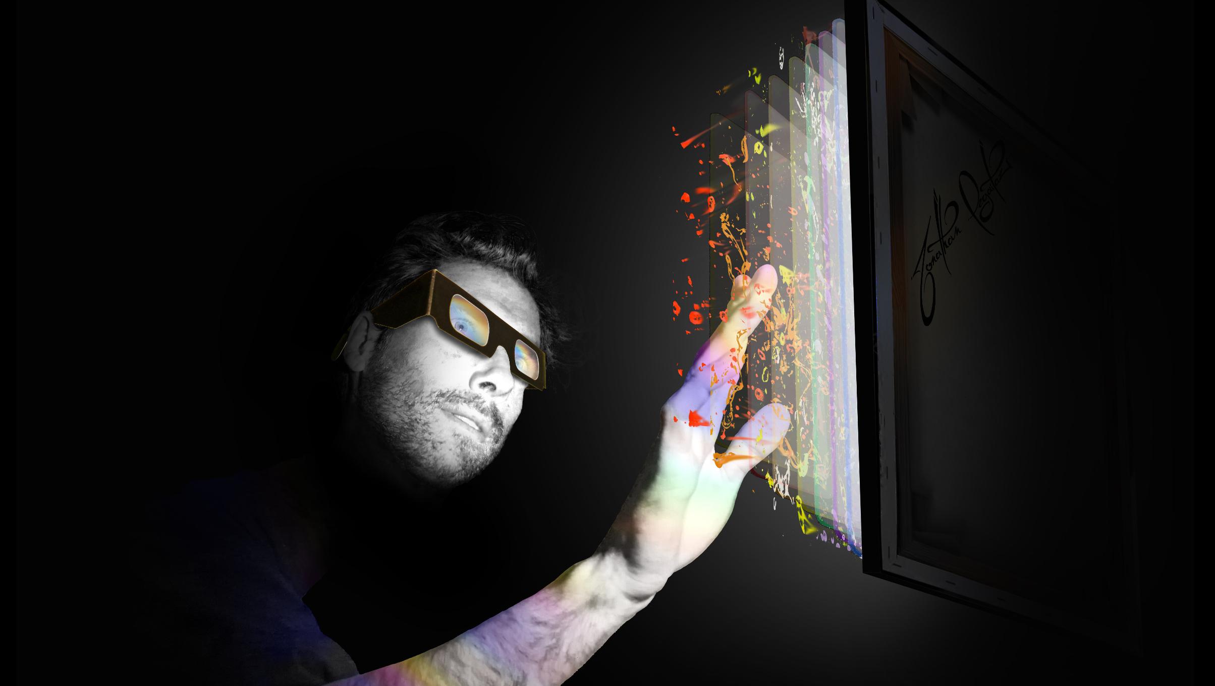 Jonathan was born in France in 1990, in a small village at the foot of the Jura Mountains,immersedinnatureandthestars, from the earth to the universe. This immersion is reflected in his painting. He grewupinanartisticenvironmentanddevelopedhis sensory perceptions, between a father passionate about music and a creative mother fascinated by energy therapies. Through his heightened perceptions and travels, he discovered sacred geometry,whichstructurestheworldandconnectsto thephysicstheoriespasseddownbyhisgrandfather, an electronics engineer. The many moments spent with him during his childhood inspired Jonathan to