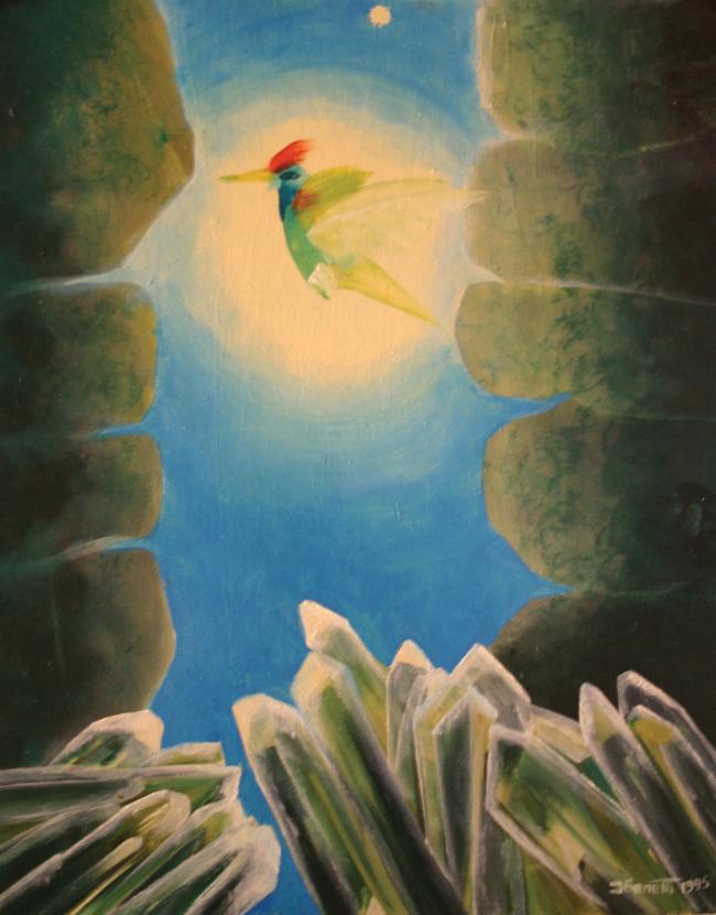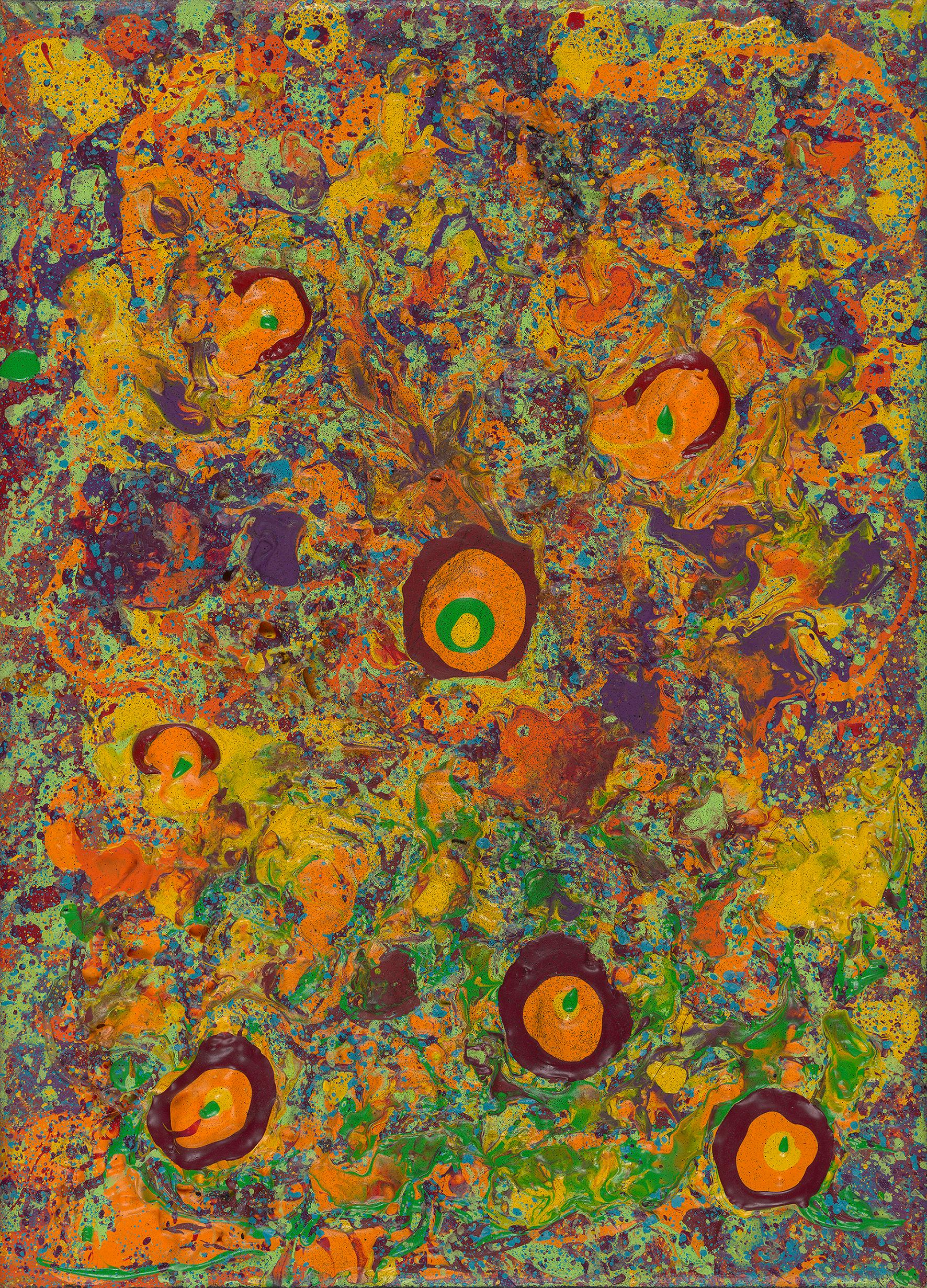 Around the age of seven or eight, I traced in the sand of the beach of my childhood the first strokes— lines, curves, circles, feathers, and flames, though without the colors—of what has now, over 65 periods, become a vast body of creations: paintings that, hereandthere,surroundmestill,sometimeseven overwhelm me, so numerous are they! Yet each one was painted in moments of my Life, moments that still make me believe in what is, and must be, Beauty. Colors, too, appeared very early—around the age of twelve—between school and play, or upon returning from adventures in the forest. Studying everything that surroundedmyadolescenceledmetothinkabout the hues I wanted to see and place on different papers, woods, and canvases.