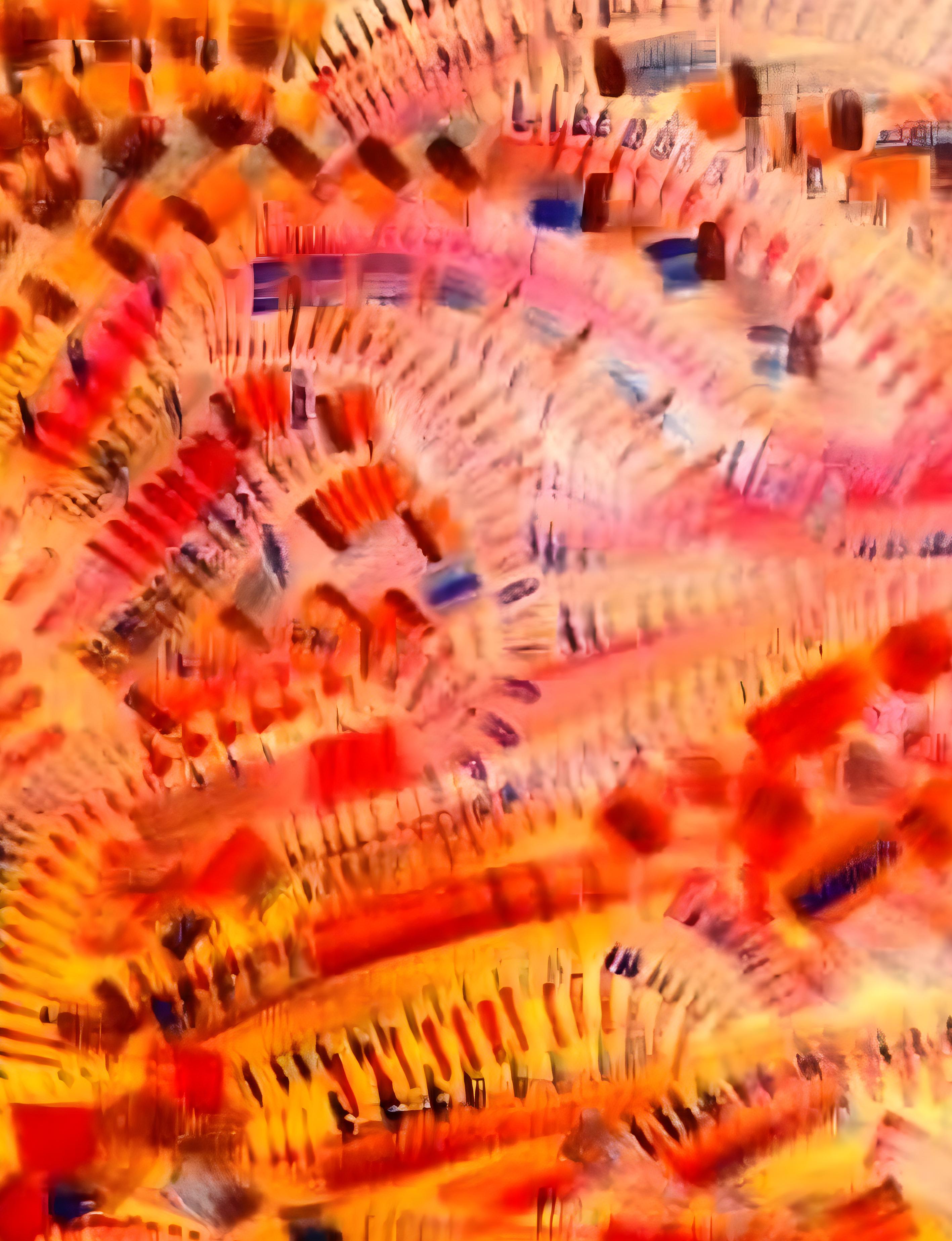 Everything evolved quickly: from greys to pinks, to greens, then the blues of childhood; from black and white to the many reds, oranges, yellows, and ochres found in my current works. I still do not know where I will go to find the sparks of new inspirations, but I believe I am on the path toward other magnificent discoveries…!