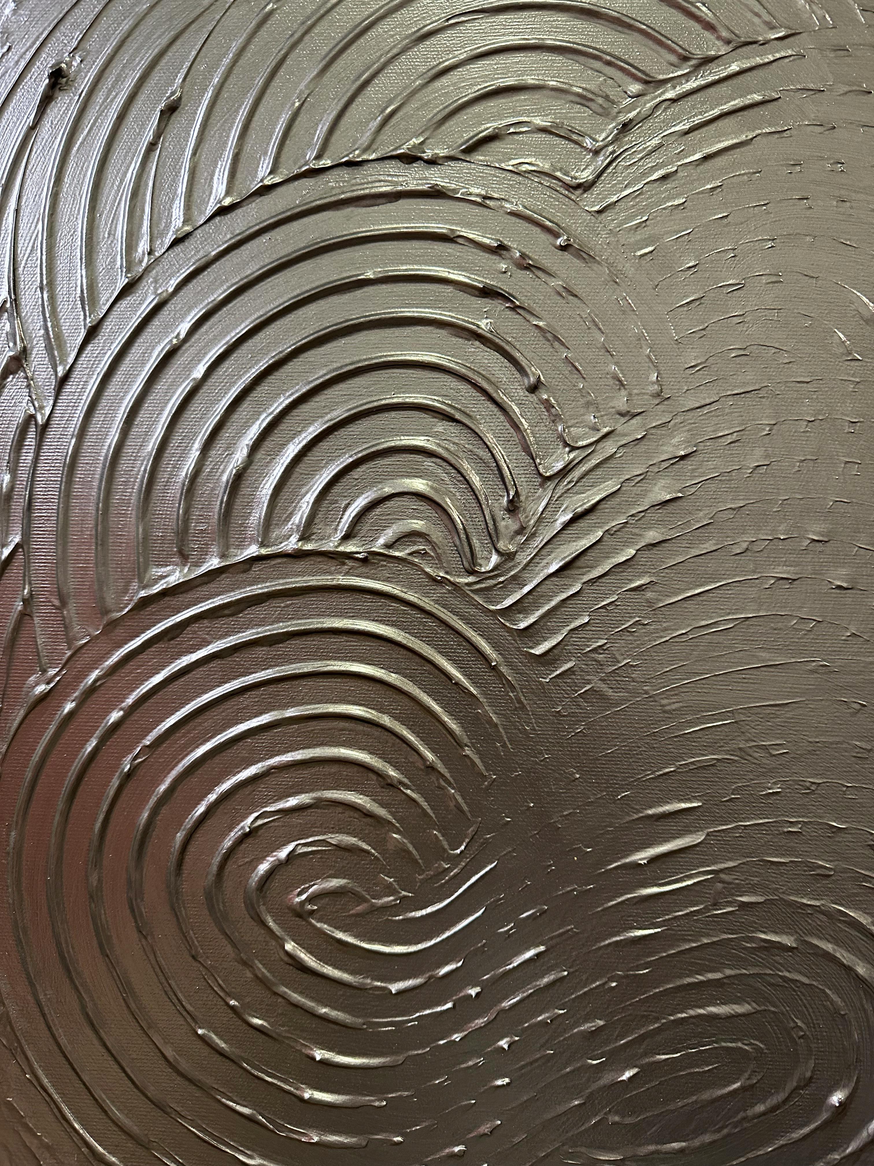 Her most extensive group of works, "The ZEN GARDEN CYCLE", shows mostly monochrome but reflective pictures with relief-like structures. The color is not used as a pure carrier of content or meaning in the working process, but rather seeks calm and balance in the sense of ZEN philosophy through the different perspectives of life, which symbiotically form overlapping relief structures, accompanied by reflection as a constant element. In the sense of art composing, the material haptics become blurred with the aesthetics of the room, the furniture lines are found again and merge in color into an overall artistic art composition, which is inherent in a uniqueness at every point and in every interior space.