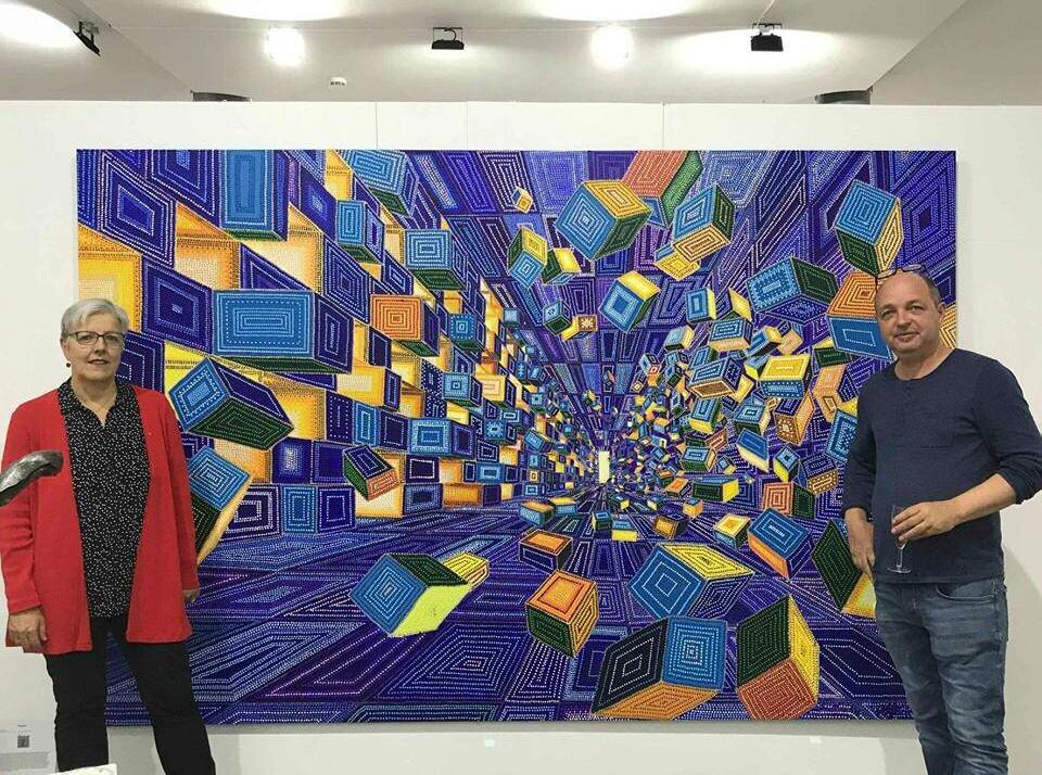 Sensible à la cause Européenne et à son développement, j'ai été particulièrement touché par l'implication du personnel soignant Allemand C'est la raison pour laquelle, j'ai souhaité accompagner, à ma mesure, cette entraide, en offrant une œuvre marquante et monumental de ma production à la FONDATION CARITAS à Wiesbaden.