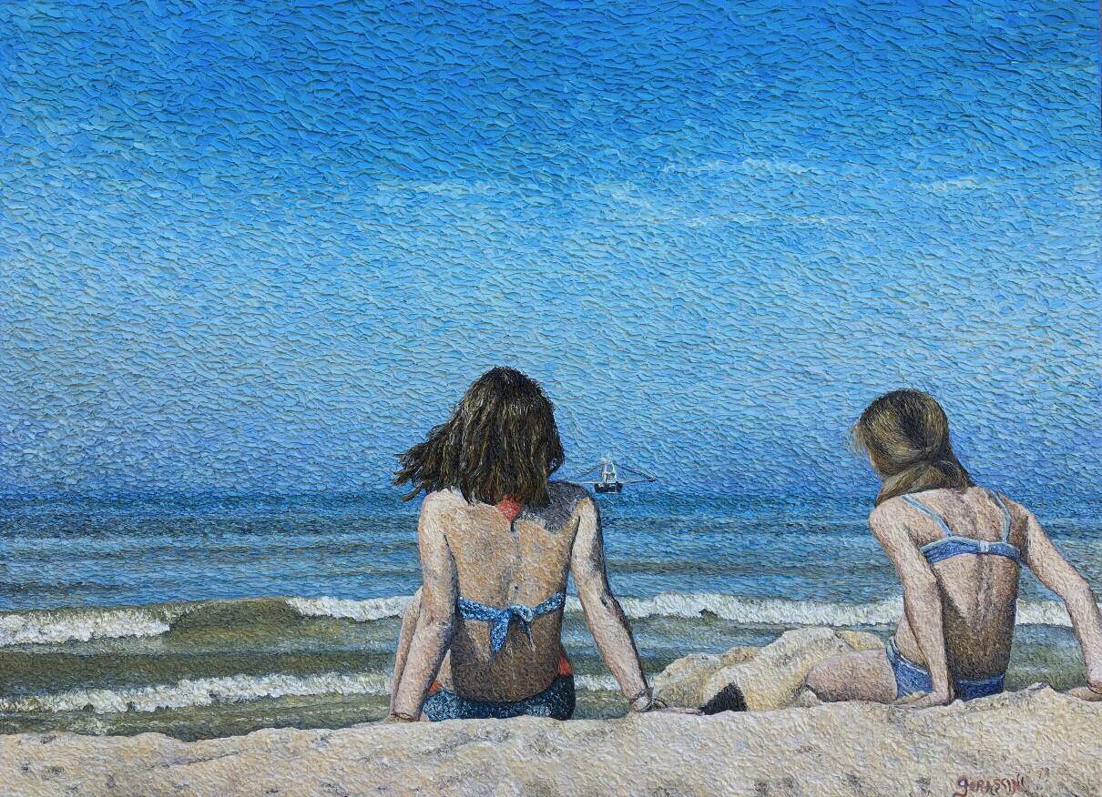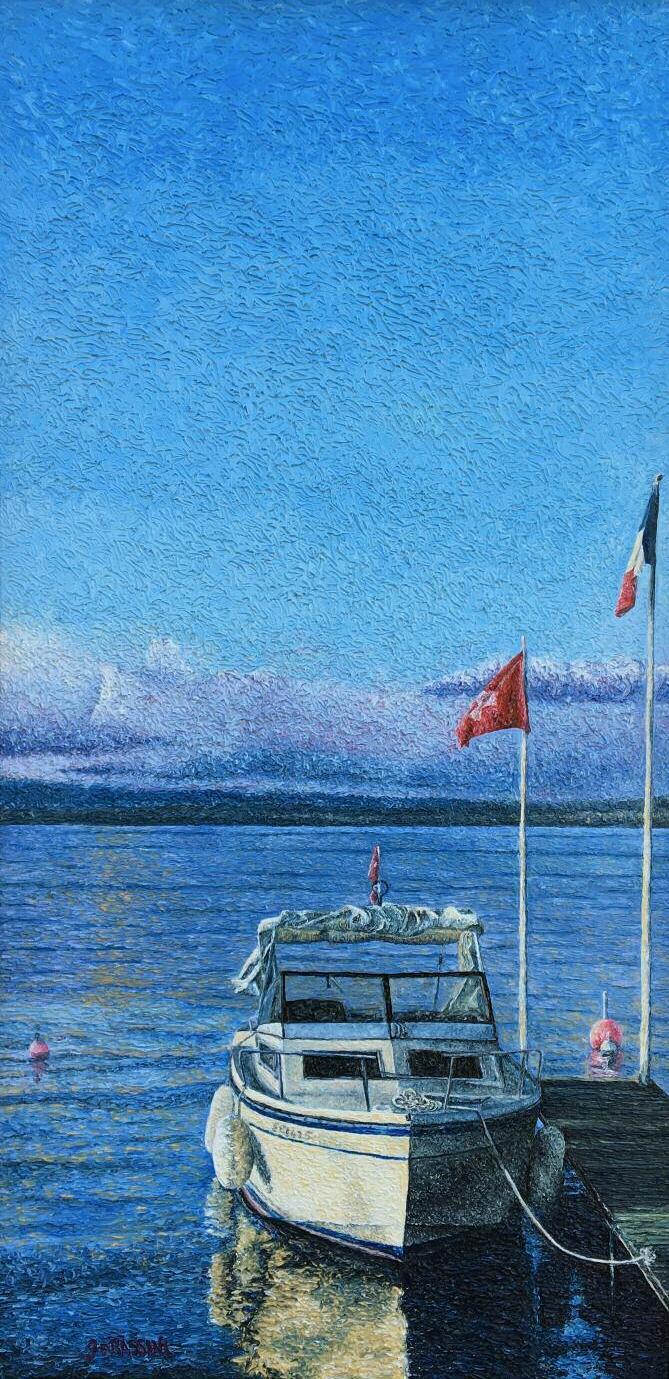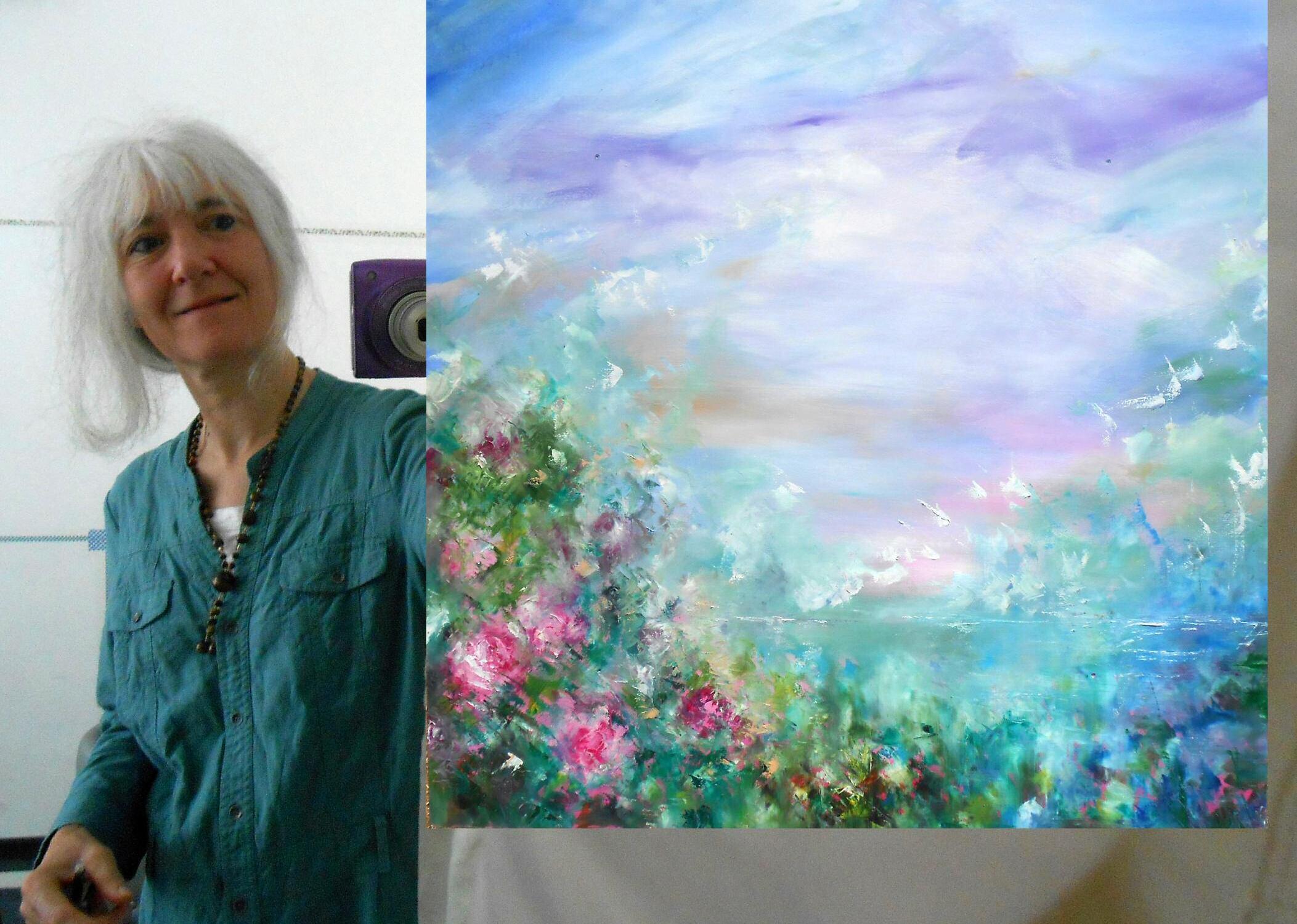 Par petites touches la peinture s'échappe vers la terre, vers la mer, vers le ciel, vers les étoiles, au confins de l'univers, et je ne cesse de regarder à travers, de lire entre les lignes, vivre sur une autre ligne...