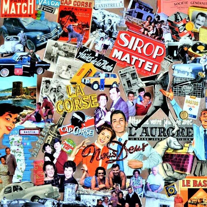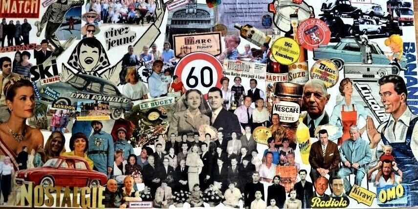 Tous les visuels sont authentiques et d’origine (publicités de magazines anciens, pochettes de 45 tours, cartes postales vintage, )