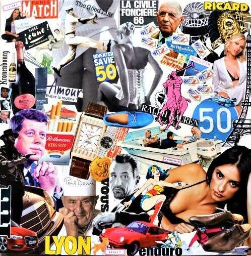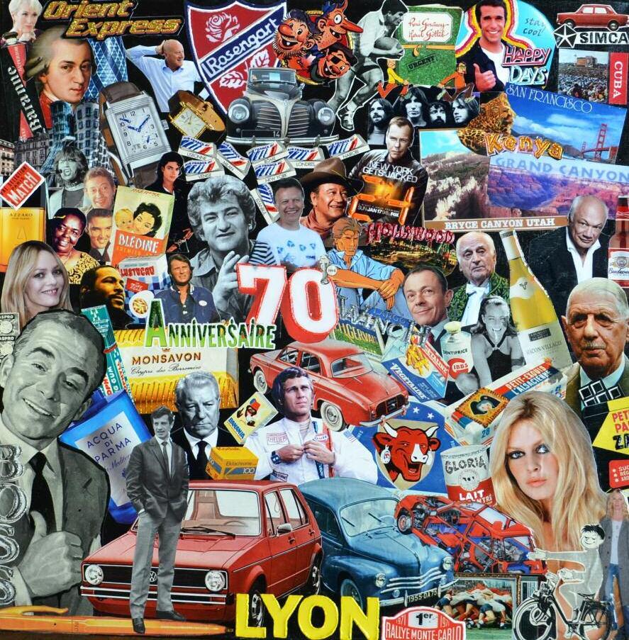 Ce tableau « Anniversaire » collages vintage sera « LA » rétrospective de « VOTRE» vie avec vos goûts, voyages, souvenirs, voitures, métiers, personnalités, artistes, et rajout possible de photos de famille