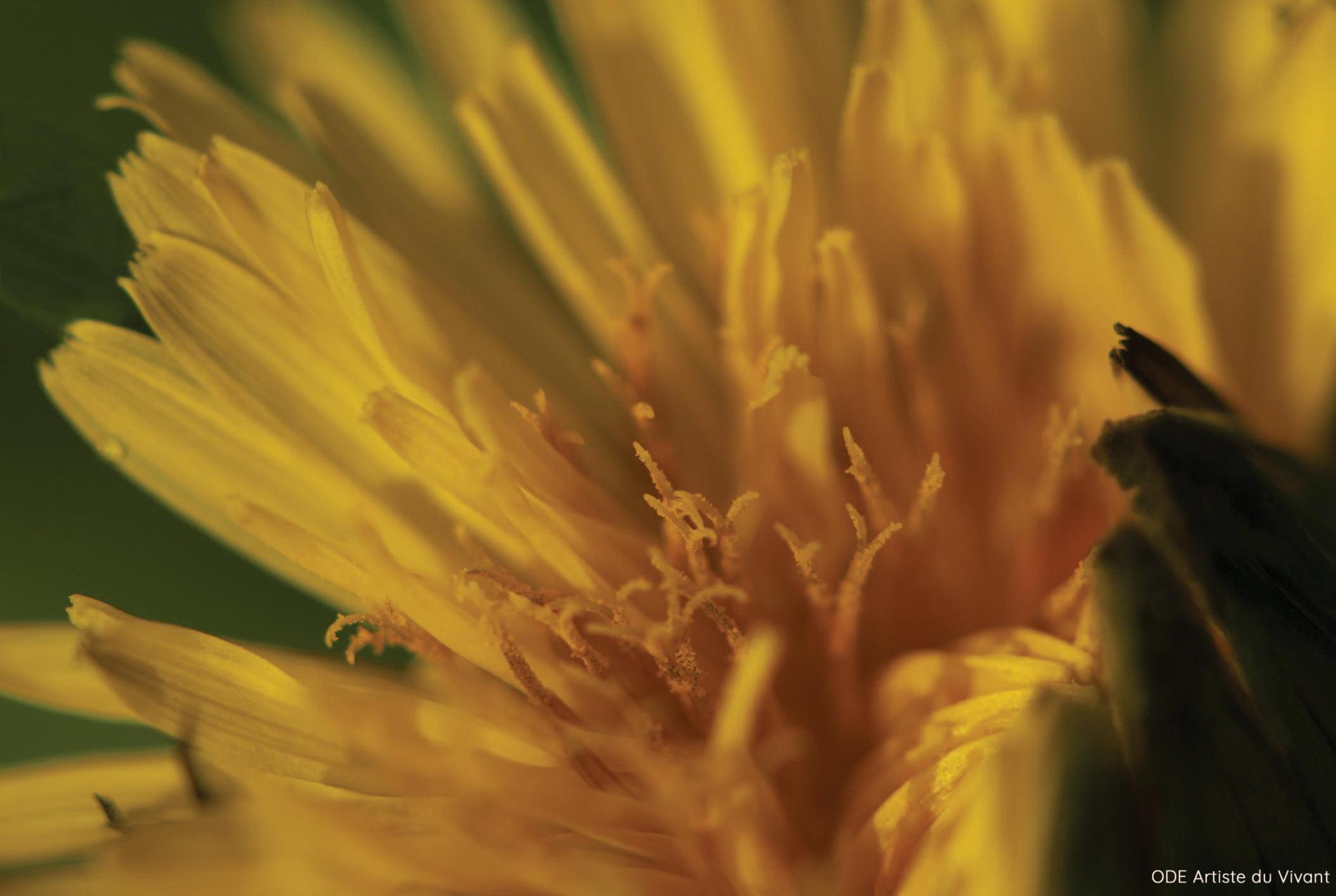 L’artiste a choisi un pissenlit en fleur Chaque prise de vue est réalisée lors d’une séance en extérieur, sans flash, en macrophotographie ou en plan rapproché qu’elle capture guidée par l’impromptu