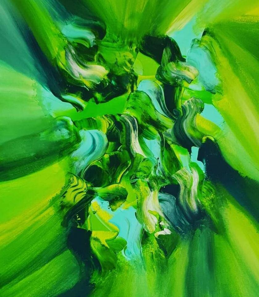 La peinture est avant tout une démarche spirituelle laissant libre cours à l’inspiration du moment Dans nombreuses de mes œuvres, c’est le Divin qui influence mes choix, les mouvements et les lumières de mes toiles