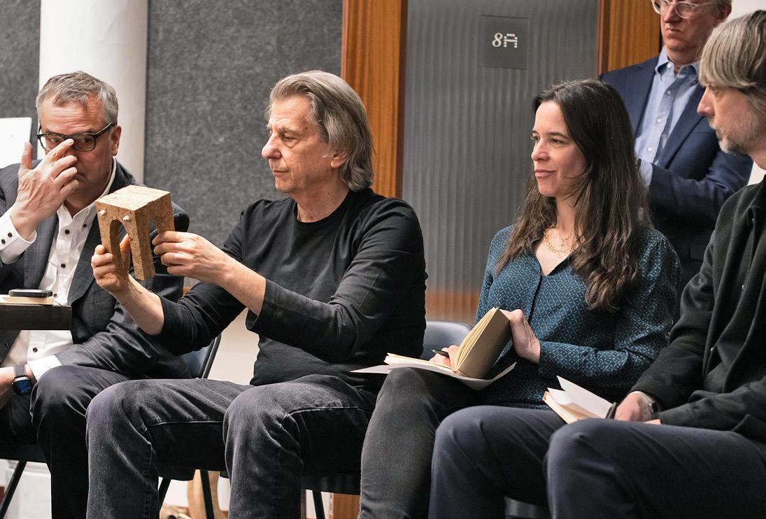The bark of cork trees can be harvested periodically and used as is (see Katarzyna Kubrak ’s project on page 9) or ground and molded into composites dense enough to serve in fabricating buildings, interiors, and furnishings. Read more about this regenerative, versatile, and resilient material—and our community’s work with it—on page 6.