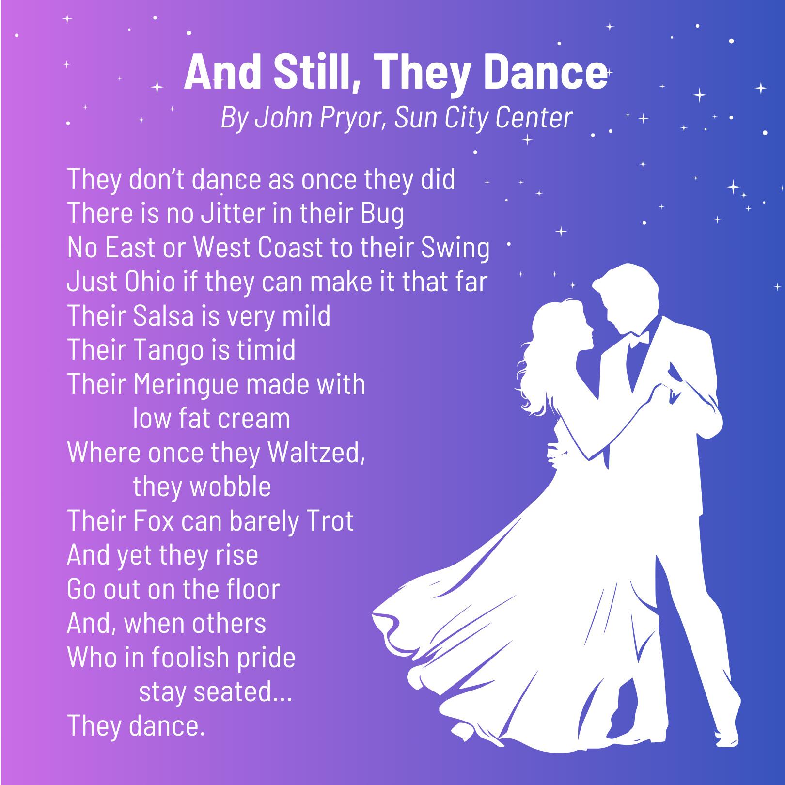 5621 – CWF, 80 yrs, NS, SD, HWP, R, P, FF, TLC. Loves theater, dancing, swimming, walks, especially ocean walks, people, my toy poodle, and teaching Tai Chi. Looking forward to spending time with you. N Ft Myers.