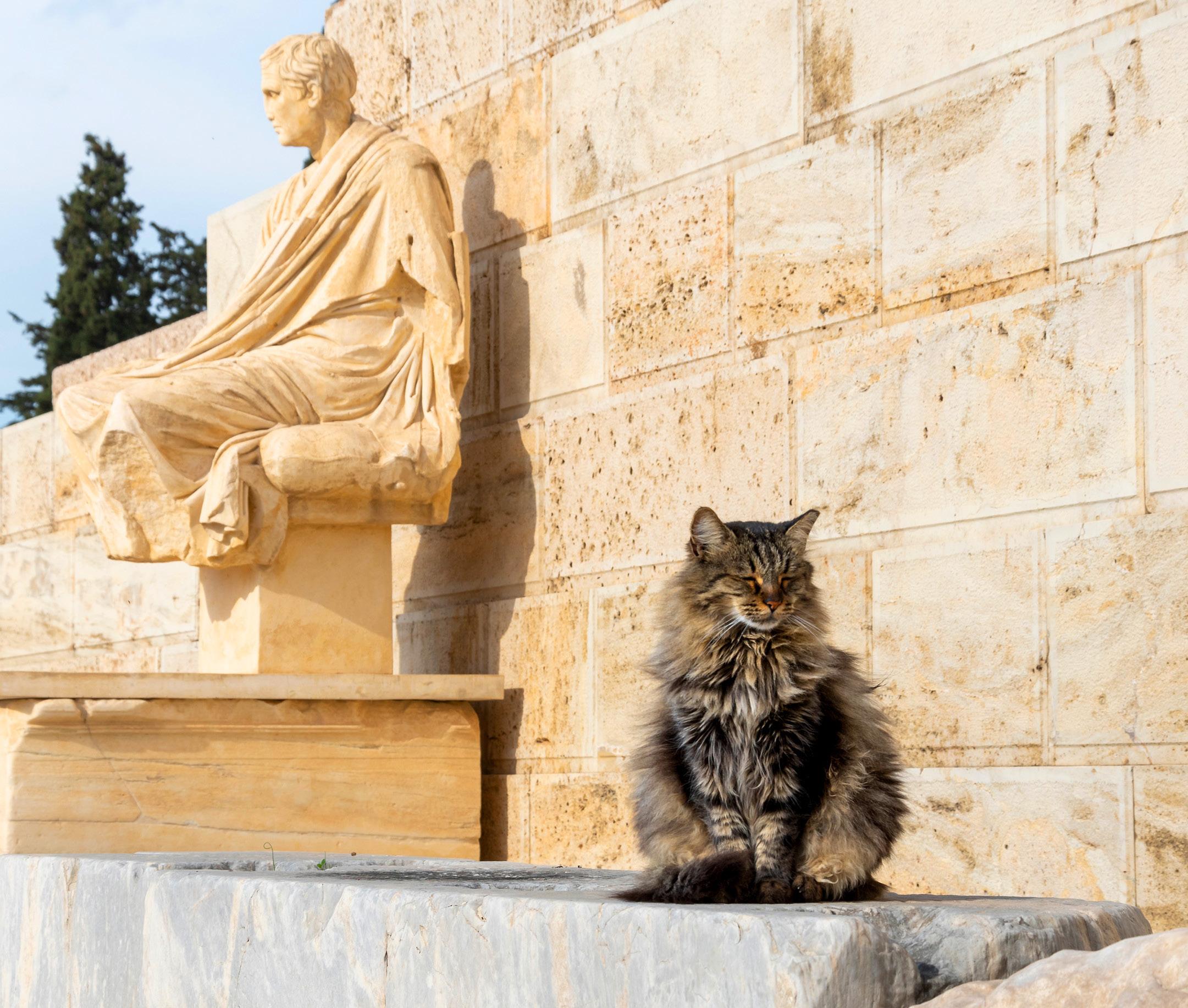 I was fortunate to go to Greece and the Acropolis twice to study the classics. As for the cats, they clearly belong there, and will probably still be there as long as Greece itself.