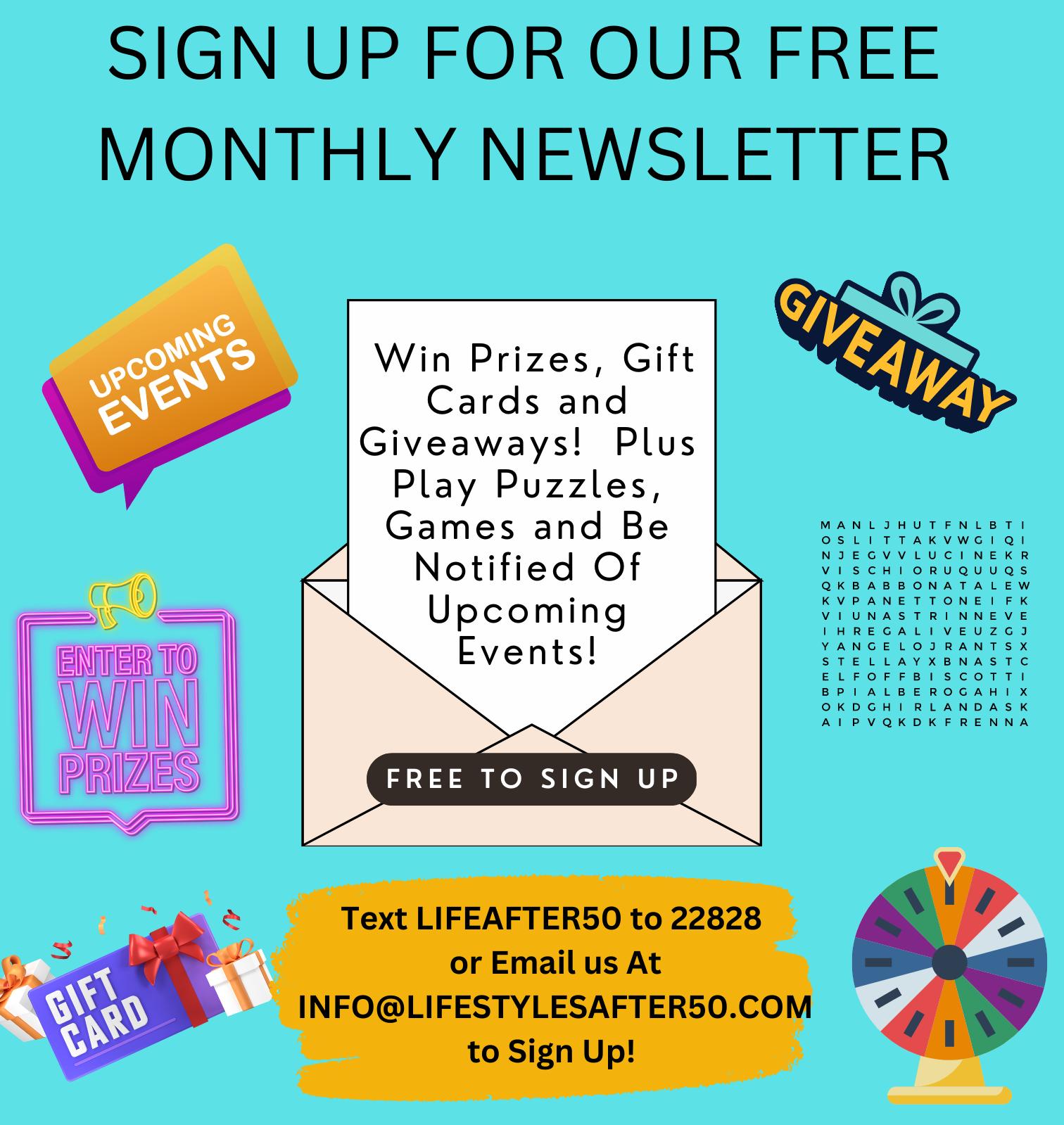 As a reader of Lifestyles After 50, you are creating an established relationship with our advertisers. You may be contacted by email, telephone or mail as allowed by law.