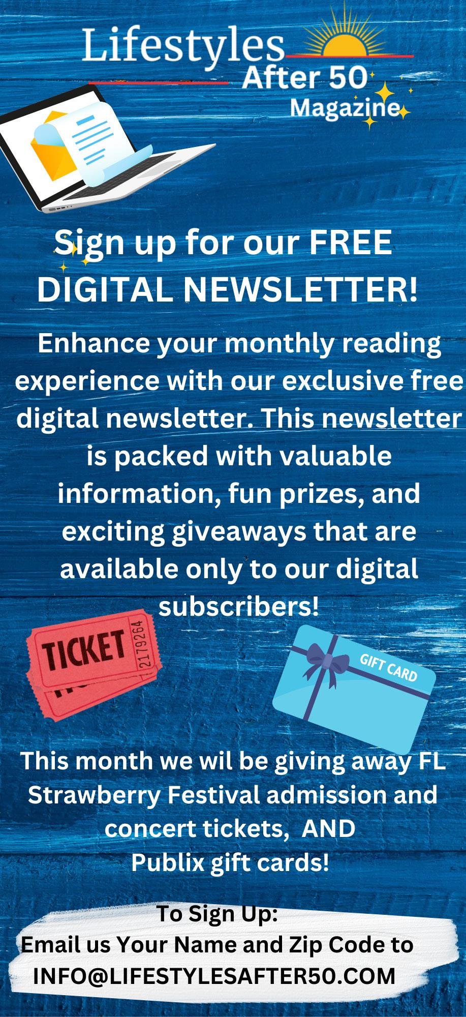 As a reader of Lifestyles After 50, you are creating an established relationship with our advertisers. You may be contacted by email, telephone or mail as allowed by law.