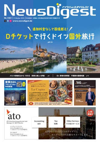 在欧日本人向けの日本語フリーペーパー、ニュースダイジェスト。英国、ドイツの2国で展開しています。現地ニュース、求人、イベント、最新ビザ情報、人気のレストランやショップ情報など、長期・短期滞在者にも、また観光で訪れる方にも役立つ、魅力的なコンテンツが満載です。