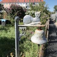 先日、長年の夢だったクラインガルテンをついに借りました! 子 どもが自由に走り回ったり自然に触れたりできる空間が欲しいな と思っていたところ、近所のクラインガルテンに空きがあるとの 情報をキャッチ。大きなバナナの木とネコの呼び鈴がチャーム ポイントの庭に一目惚れし、即決しました。実際に借りてみると、 雑草を抜いたり小屋を修繕したり……とにかくやることが尽きま せん。子ども以外にも世話するものが増えた感は否めませんが (笑)、自然に囲まれてのんびり過ごせるし、庭仕事で運動不足 も解消できるし、いいこともたくさんありそうです。(真)