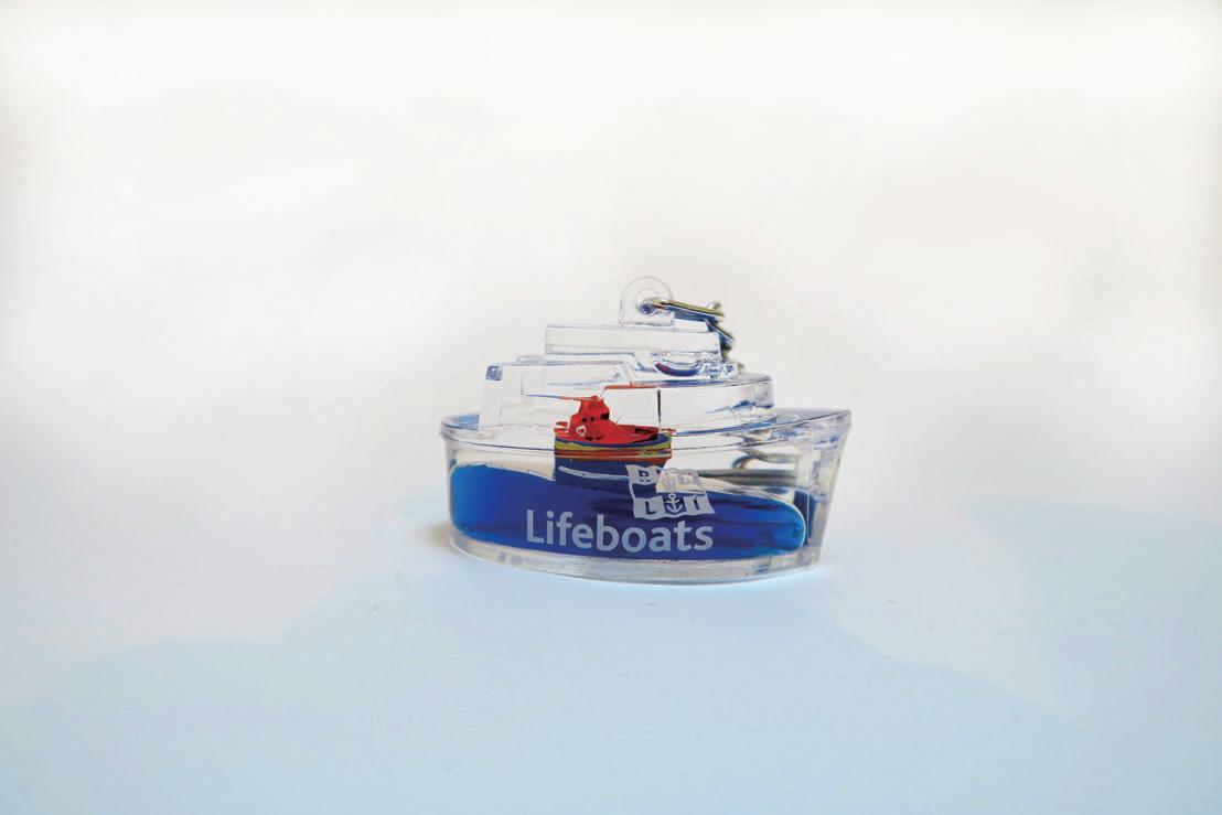 助活動や夏のビーチのライフセービングまでそ の内容は多岐にわたる。また、その合間には子 どもたちへのリスク指導など水難事故防止の取 り組みにも努めている。現在ボランティア人員 は同協会の95パーセントとなっており、エキス パートたちと共に日々活動に当たっている。 寄付によって運営される協会ゆえ、自身で商 品を販売しその売り上げも全て資金に当ててい る。今回紹介するアフロート・キーリングは、ボー トをかたどった透明の容器のなかに、海をイメー ジさせるような青い液体とオレンジ色の船が浮 かんでおり、揺らすと船がその動きに合わせゆ らゆら動く仕組みだ。救難ボートらしく、中の 船はキーリングをひっくり返しても決して転覆 しないのが粋なデザイン。観光地の土産屋にあ るような郷愁を覚える見た目もまたいい。RNLI 独自の商品はこのほかにも多数あり、購入は沿 岸部を中心に160を超える店舗のほかオンライ ン・ショップで可能だ。 RNLIショップ/ ライフボート・アフロート・キーリング RNLI Shop / Lifeboat Afloat Keyring £3.50 https://shop.rnli.org