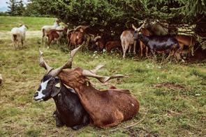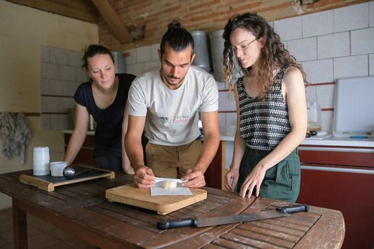 世界に冠たるフランス料理だが、農耕に適した土地が多 いのも料理文化が発展した理由の一つだろう。2019年の農 業総生産額はEU加盟国の中でフランスが最も高く、牛肉の 生産量でもトップ、乳製品は第2位となっている。そんな農 業大国で実際に農業に携わって本物のグルメを堪能しよう。 スペインのカタルーニャ州と隣接するアリエージュ県にある 「キュビエール農場」(La Ferme Cubières)では、70頭の ヒツジやニワトリを飼育し、菜園や果樹園も所有。オーガニッ クの乳製品の製造や、ヒツジから刈りとった上質なウール、 環境にも肌にもやさしいナチュラル・ソープなど、自然の素 材を使った製品を、動物たちのリズムに合わせて生産してい る。それを一般の人にも体験してもらおうと、定期的にワー クショップを開催。例えば、乳搾りから始まるフレッシュ・チー ズ作りの全工程を学び、自分だけのチーズを味わうことがで きるワークショップなどがある。 のんびりファーム・ステイを体験 もっとゆっくり農場で過ごしたい人には「レ・ボヌール・ドゥ・ ソフィー農場」(Les bonheurs de Sophie)がおすすめ。 この農場はフランス東南に位置するオーヴェルニュ=ローヌ =アルプ地域圏にあり、農場見学のほか、民宿も運営している。 特にオーヴェルニュ地方はなだらかな起伏や小山の続く地形 で、牧畜業が盛ん。良質な食品が生まれることで知られてい る。同農場で搾乳されたヤギとヒツジの乳で、チーズだけで なく、ヨーグルトやアイスクリームなども作られている。オー ナーのモットーは「大量生産はしない、手に入るものを食べ る、旬のものを食べる」とのこと。この農場でとれた旬もの をいただくレストランをはじめ、生態系について学ぶワーク・ ショップ「fil du vivant」(命の糸)も開催。搾乳体験をはじめ、 チーズ造りの見学、さらに農産物を味わったり、牛の群れの 見張りをしたりと農家の生活を体験できる。ただし人数が限 られているので、事前の予約が必要!