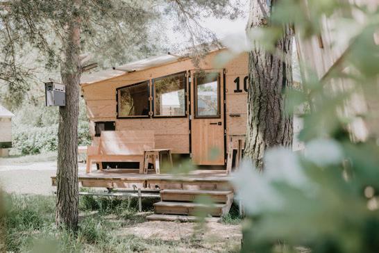 旅行業界でも「サステナビリティ」がトレンドのドイツで は、それを実践するユニークな宿泊施設が増えている。まず は、ドイツ北西部ニーダーザクセン州ヒッツアッカーにある 「デスティネイチャー」(destinature)をご紹介しよう。「ヴェ ルクハウス」(WERKHAUS)という接着剤やねじを使わず に組み立てられる家具のメーカーが、2020年に「持続可能 な観光」というコンセプトで立ち上げたリゾート地だ。自然の ど真ん中につくられたこの施設は、一つの村のようになって おり、持続可能な運営を実践している。