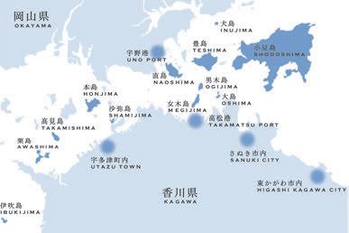 Über insgesamt sieben Präfekturen mit zahlreichen Inseln erstreckt sich die Setouchi-Region im Südwesten Japans. Alle drei Jahre wird hier im Rahmen der Setouchi Triennale Kunst und Kultur groß in Szene gesetzt, und zwar an insgesamt 17 Standorten, zu denen neben 12 Inseln, darunter die Kunstinsel Naoshima, die Küstenstädte Takamatsu und Tamano zählen.