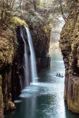 japanischen Mythologie verbunden. Die Takachiho-Schlucht, die durch pyroklastische Ströme des Aso-Vulkans entstanden ist, bietet mit ihren säulenartigen Felsformationen ein wunderschönes Naturspektakel E . Erleben Sie die malerische Landschaft auf einer Bootsfahrt. Sie kommen auch am geheimnisvollen, würdevollen Ama-no-Iwato-Schrein vorbei, der sich in jener göttlichen Höhle befindet, welche schon in Japans ältesten Chroniken, Kojiki und Nihonshoki, erwähnt wird. Am Abend genießen Sie im Takachiho-Schrein den traditionellen Tanz Takachiho Kagura, der alte Göttersagen darstellt F