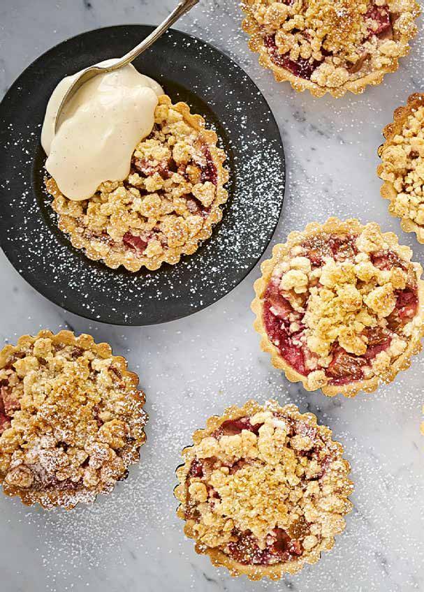 2. Lägg i rabarber och smula över smuldeg