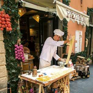 1. ROM PÅ MYSIGA TRATTORIOR serveras traditionell italiensk mat av lokala råvaror. Ofta har restaurangen gått i arv i generationer och de gamla mattraditionerna lever sida vid sida med moderna influenser. Matmarknaderna är som färgstarka tavlor och i ”kiosker” köper du ljuvlig pancetta och pizza. Missa inte Roms gelaterior.