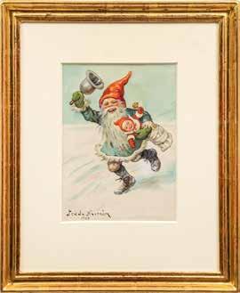 Jenny Nyström - Jultomte (1928), 37x 31 cm inkl. ram, blandteknik/papper, Pris vid förfrågan