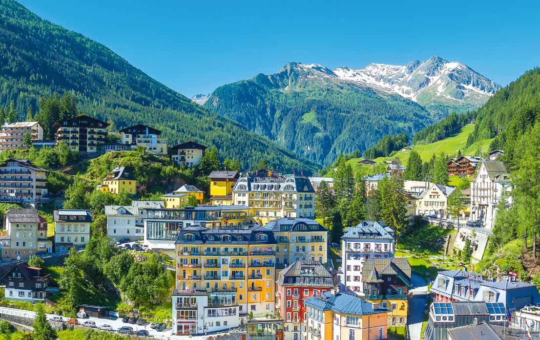 Bad Gastein är ett solsäkert semesterparadis med vackra vandringar, god mat på mysiga bergshytter, aktiviteter som golf, e-Bike, yoga, bad i varma källor och utflykter till bl a Venedig och Salzburg. Bo på klassiska Hotel Salzburger Hof, Hotel Post, Hotel Eden Rock m fl.