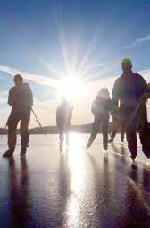 DALARNA ÄR ETT ANNAT MECKA för långfärdsskridskoåkare. Sjön Runn mellan Falun och Borlänge är ett populärt utflyktsmål. Här finns en 70 kilometer lång plogad bana. Orsasjön och Siljan är två andra exempel på fina skridskosjöar i Dalarna.