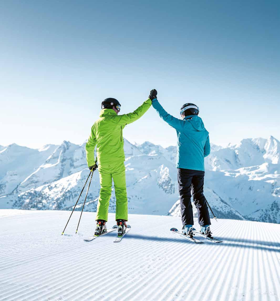 VÅREN ÄR EN FANTASTISK ÅRSTID för skidåkning i Zillertal. De höga bergstopparna gör att backarna kan hålla öppet långt in i april. Utsikten över de vita alperna under en klarblå himmel är magisk. Ett tips är att lägga de första svängarna före soluppgången. Under ”Early bird skiiing” är backarna nypistade och krispigt glittrande. Låt sedan