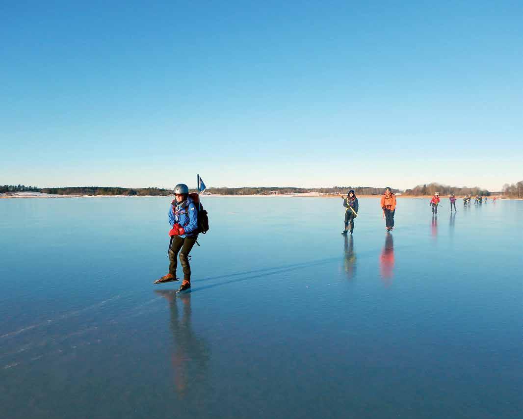 DET ÄR ÄVEN MÖJLIGT ATT GE sig ut på isen utmed Västkusten och kring Göteborg. Här blir naturupplevelsen helt annorlunda och saltvattnet gör isen grövre och mer porös. De lokala långfärdsskridskoklubbarna kan bidra med dagsfärsk information.