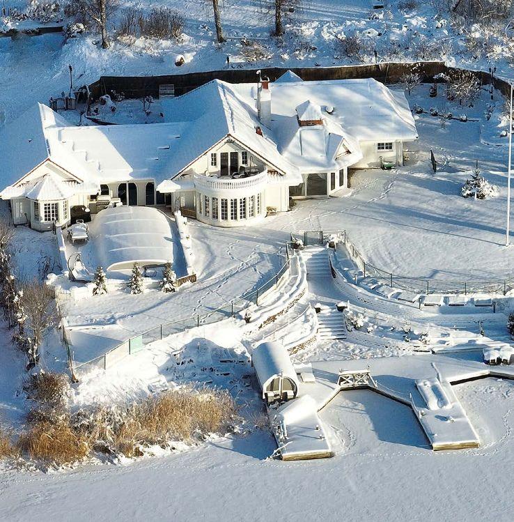 Villa på sjötomt med brygga, bastu och gästhus.