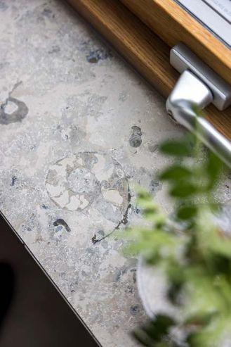”Vi önskade oss ett tidlöst hem som kunde åldras vackert. Där känslan av naturen förstärks genom materialen. Eftersom vi har en hel del ekar på tomten har jag använt mycket ek i inredningen. Och betonggolven påminner om klipporna nere vid vattnet”, säger Åsa Hjort.