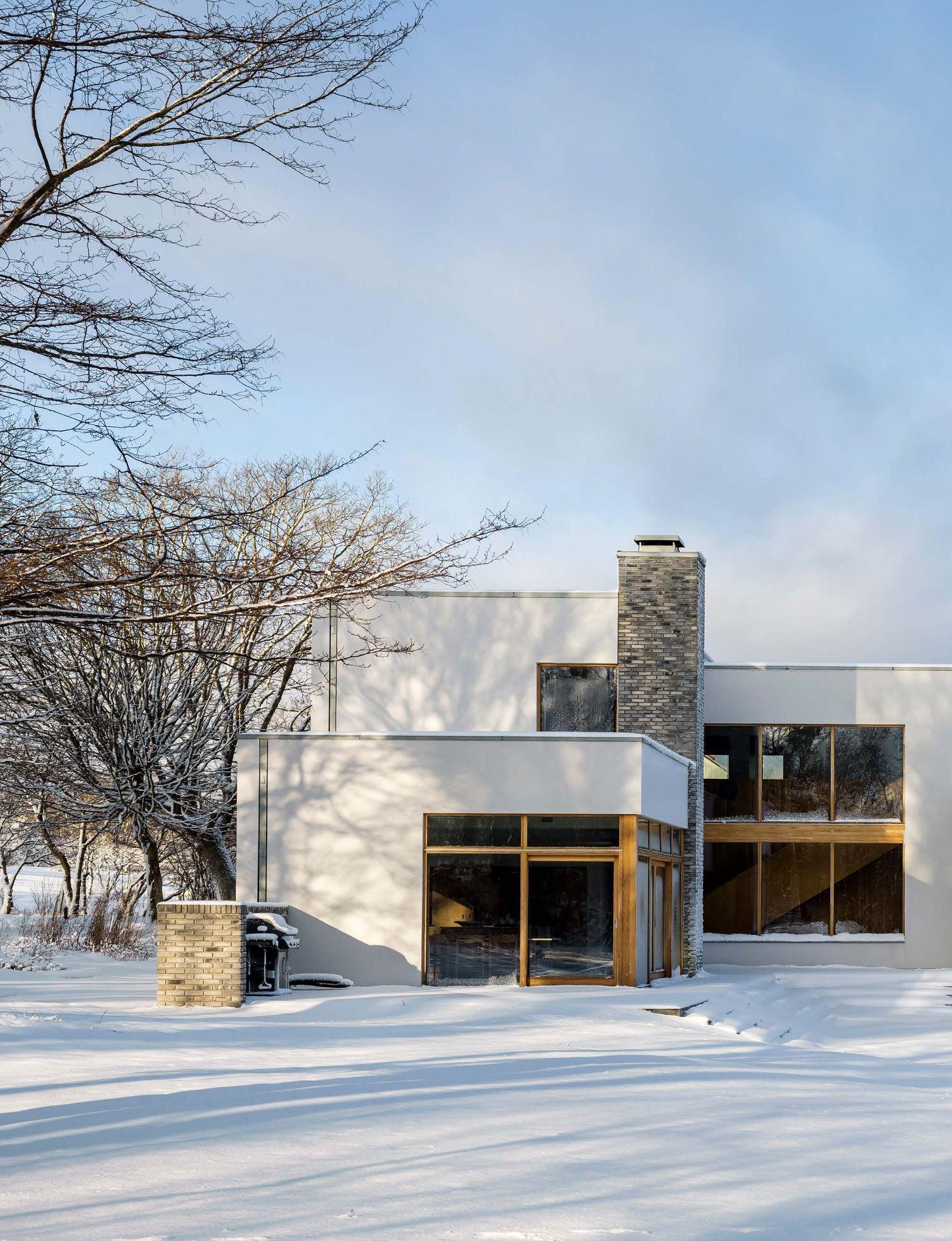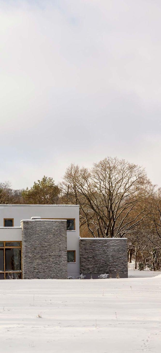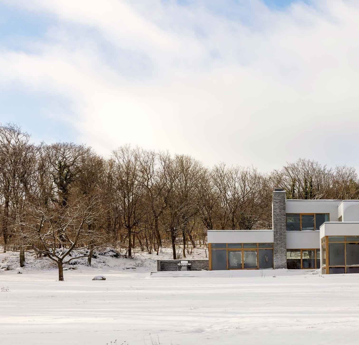 ”Arbetet med att återställa landskapet till en äng med vilda blommor mellan huset och havet startade redan 2016. Landskapsdesignern planerade även en mer traditionell trädgård mellan huset och vägen. Därtill har tre av taken täckts med sedum. Det skapar en kontinuitet från det yttre landskapet till husets insida”, säger Åsa Hjort. Inspirationskällorna till huset är flera. En arkitekt som Åsa Hjort återkommer till i sitt arbete är SIGURD LEWERENTZ Stjärnarkitekten ligger bakom flera byggnader i Skåne, bland annat operan och flera byggnader på Östra kyrkogården i Malmö. En annan gigant är CHARLES EAMES . Den amerikanska arkitekten och formgivaren står även för en av parets första gemensamma möbler; fåtöljklassikern ”Lounge Chair 670” från 1956.