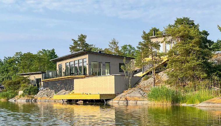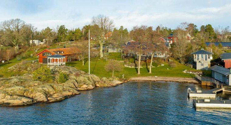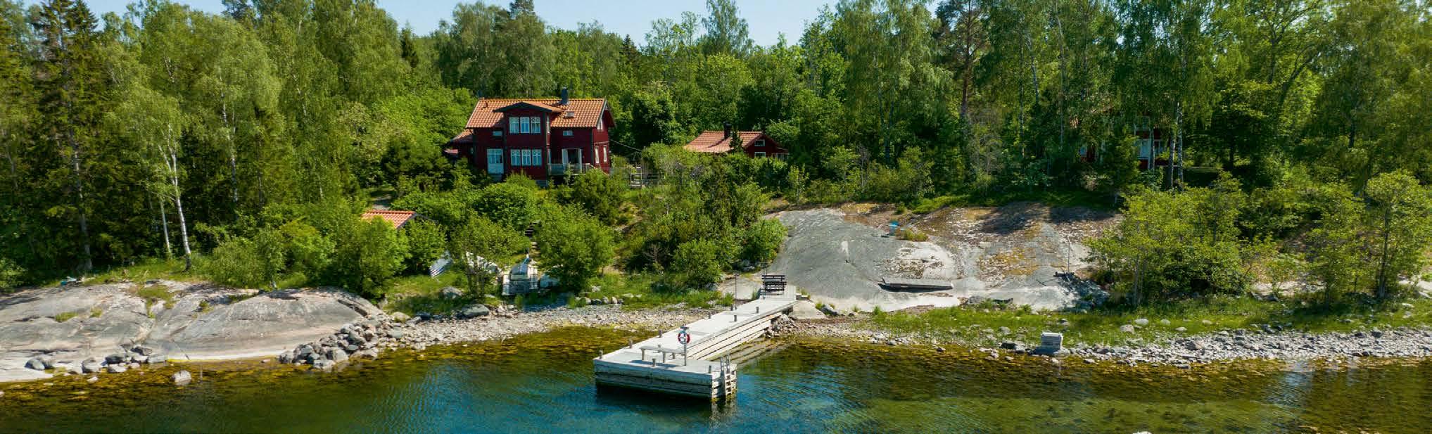 Arkitektritad huvudbyggnad och gästhus med vacker naturtomt och egen brygga med segelbåtsdjup. Här bor man i lugn skärgårdsmiljö med närhet till havet och naturen.