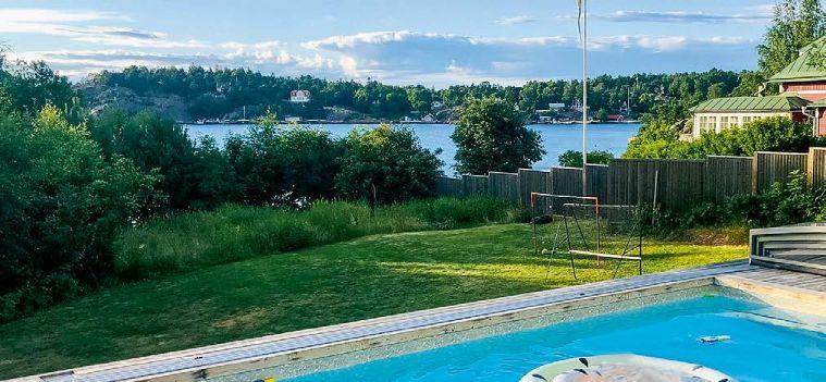 Gemytlig poolvilla med högt läge & sjöutsikt i Österskär.