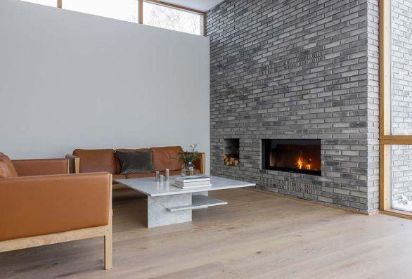 Som arkitekt med 20 år i branschen är villan det första projekt där Åsa Hjort skapat allt själv. Från planlösning och projektplan till materialval och inredning – hon har designat en rad platsbyggda möbler. I rummen syns soffbord, bokhyllor, hallbänkar och garderober, badrumskommoder designade av ”ÅHA”, Åsa Hjort Architects.