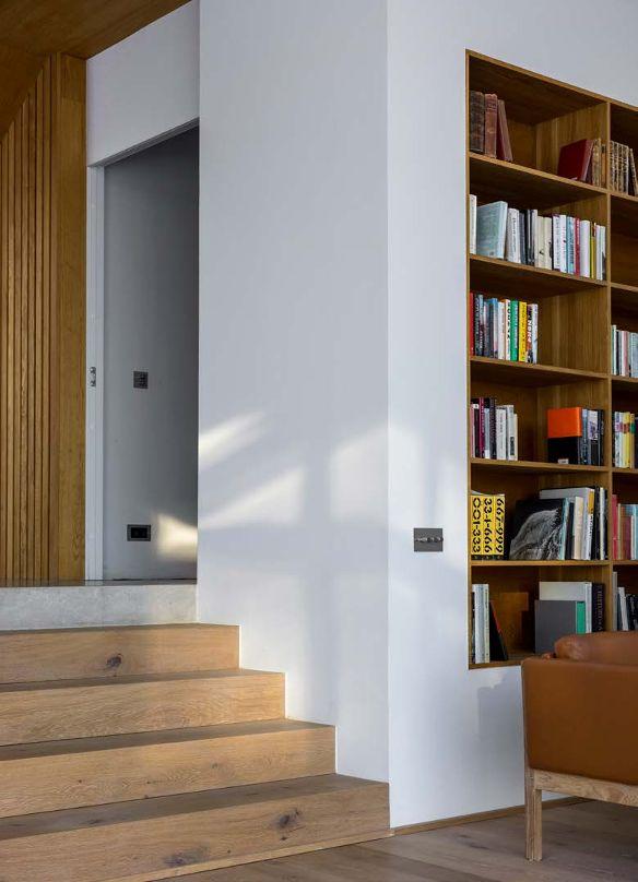 SÖMLÖST. Soffgruppen är från Carl Hansen CH163, bordet i carraramarmor är designat av ÅHA. Trappstegen i ek är från Dinesen medan den platsbyggda trappan är tillverkad av Orbital Projects.
